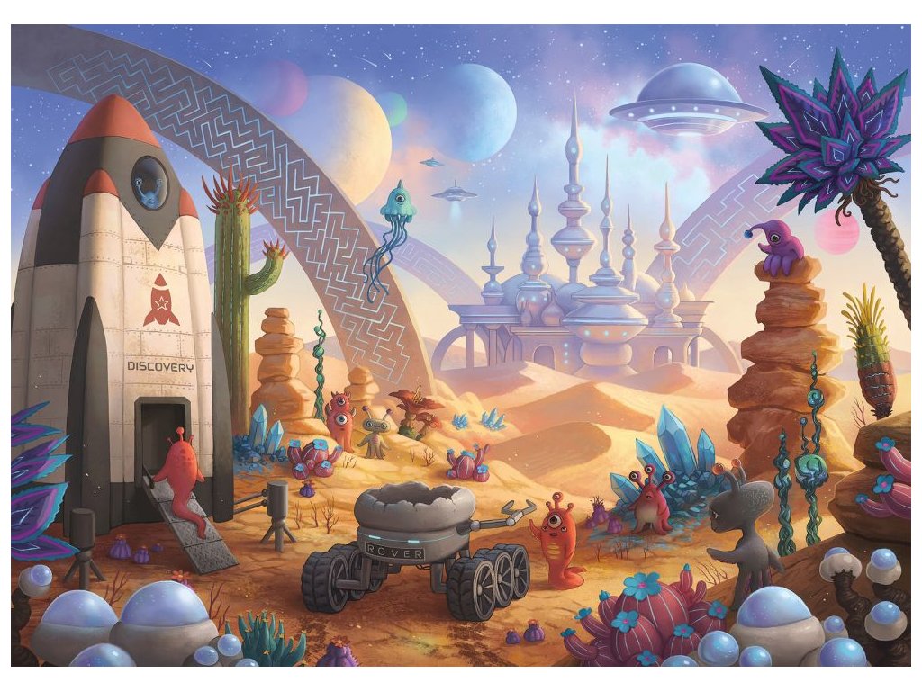 'Zažijte nesrovnatelnou zábavu při skládání vysoce kvalitního puzzle s motivem vesmíru od společnosti Ravensburger. Jedinečné dílky puzzle do sebe perfektně zapadají. Po složení puzzle na vás čekají úkoly k vyřešení únikové hry, dokážete rozluštit symboly a vyřešit hádanku?