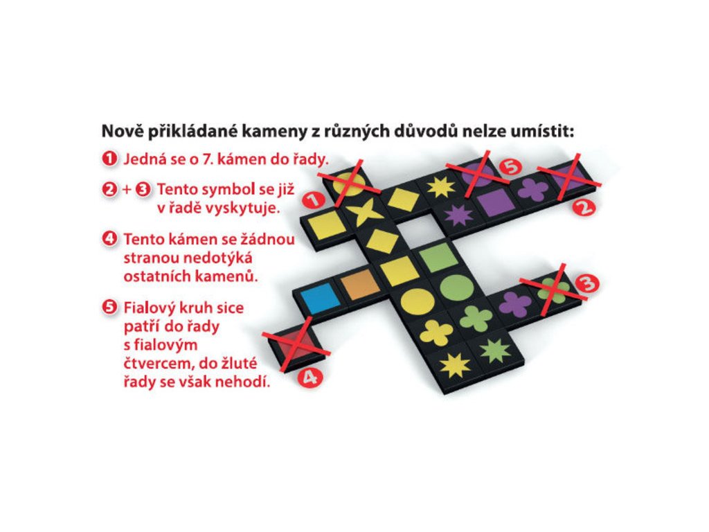 Při pokládání 108 hracích kamenů hráči tvoří a rozšiřují řady stejných barev a stejných symbolů tak, aby dosáhli co nejvíce bodů. Ale pozor, vaši protihráči nebudou jen tak sedět a nečinně přihlížet. Dobře si tedy ohlídejte, abyste při čekání na výhodnou mezírku nenachystali někomu slušně obodovanou řadu.