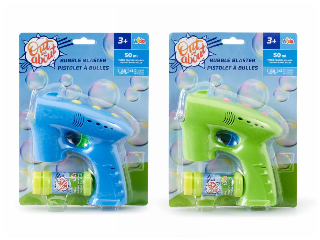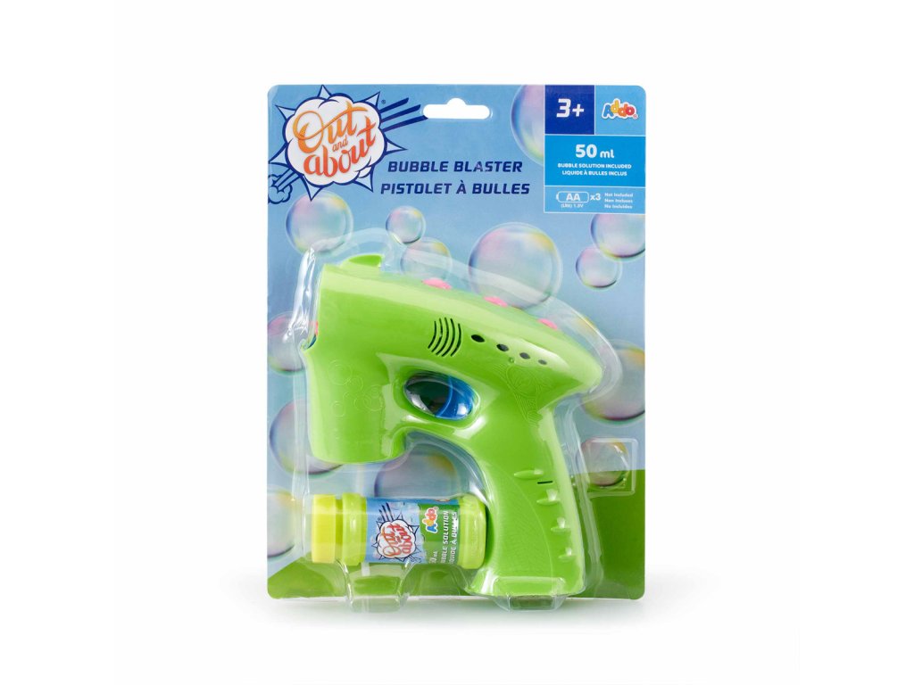 Vytvářejte desítky a desítky zábavných plovoucích bublin s tímto zelenomodrým bublinkovým blasterem Out and About. Stačí naložit bublinkovou směs do blasteru, stisknout spoušť a sledovat, jak začnou létat bubliny! Vyfukujte zábavné bubliny po vaší zahradě a závoďte v jejich praskání, než dopadnou na zem, nebo vyzvěte své přátele, aby zjistili, kdo dokáže vystřelit nejvíce bublin za jednu minutu – použijte svou představivost a užijte si zábavu na slunci s tímto odstřelovačem bublin. Sada obsahuje: pistole, 50ml bublinkový roztok. Provoz vyžaduje baterie 2xAA(nejsou součástí). Ve dvou barevných variantách- zelená a modrá. Rozměry: 18,5 x 25 x 6 cm. Věk: 3+