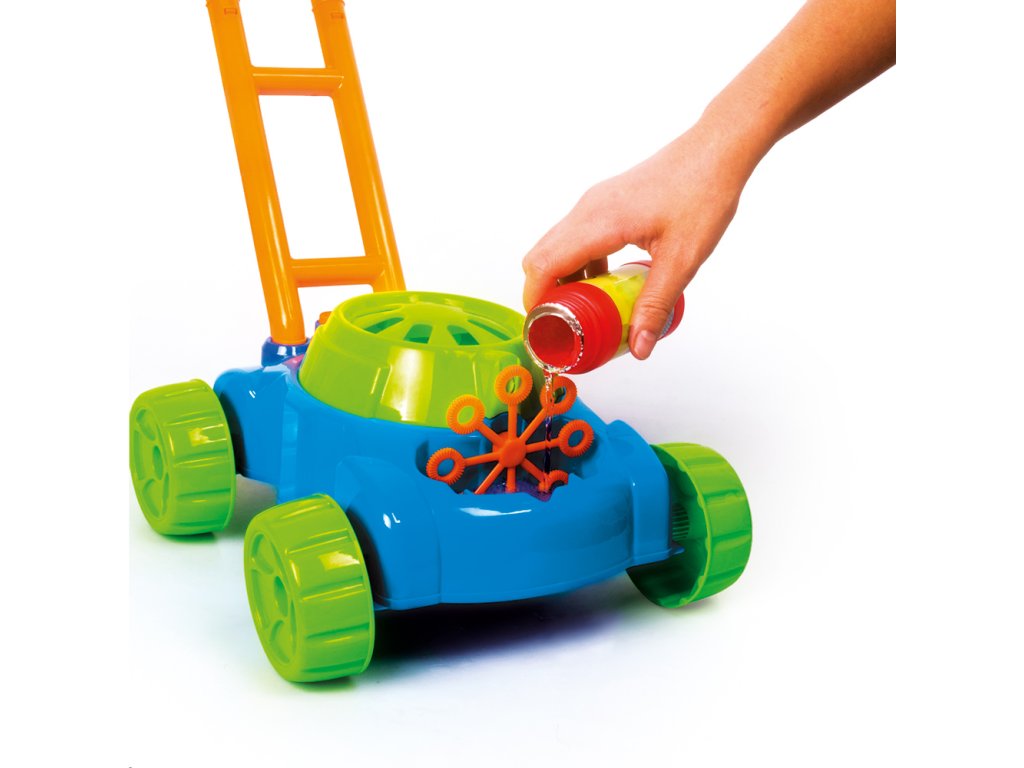 Jednoduše nalijte přiložený roztok bublin do sekačky a stiskněte tlačítko. Uvidíte množství magických bublin proudících z přední části motorové sekačky! Sekačka podporuje rozvoj pohybových aktivit. Sekačka je stabilní díky široce posazeným kolům a snadno ovladatelná díky pevné plastové rukojeti. Rozměr cca: 15,3 x 26,2 x 28,1 cm. Baterie: 3x AA (nejsou součástí balení). Bublifuk (cca 100 ml) je součástí balení. Doporučený věk: 3-10 let. Rozměr balení: 26,8 x 28,5 x 16 cm. Video: https://flv.isitetv.com/media/video/2545/video_url_203851_2545.m4v