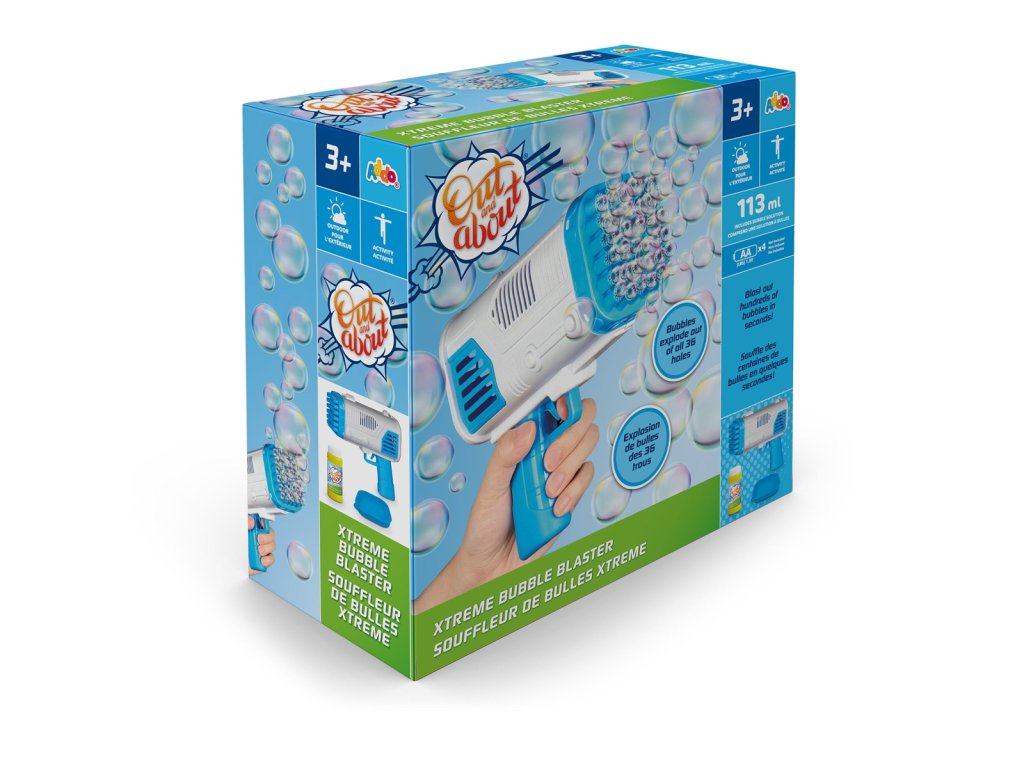 Hledáte pro své děti aktivitu, která je potěší a zaujme? Bublinková pistole se 36 otvory vystřelí stisknutím spouště během několika sekund stovky bublinek! Stačí pouze namočit zbraň do misky a můžete tvořit bubliny. Skvělá party hračka pro děti i dospělé. Mimořádně snadné ovládání, stačí jen vložit baterie. Funguje na 4xAA baterie, které nejsou součástí balení. Sada obsahuje pistoli, 113 ml lahvičku s bublinkovou tekutinou, misku pro aplikaci bublifukové tekutiny. Warning – CZ, SK, PL, HU. Rozměry balení: 20 x 37 x 14 cm. Rozměry hračky: 19 x 20 x 9 cm. Věk: 3+