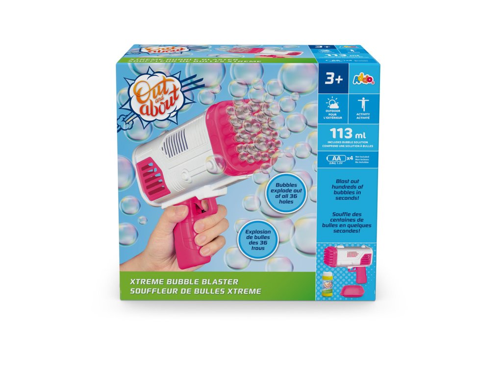 Hledáte pro své děti aktivitu, která je potěší a zaujme? Bublinková pistole se 36 otvory vystřelí stisknutím spouště během několika sekund stovky bublinek! Stačí pouze namočit zbraň do misky a můžete tvořit bubliny. Skvělá party hračka pro děti i dospělé. Mimořádně snadné ovládání, stačí jen vložit baterie. Funguje na 4xAA baterie, které nejsou součástí balení. Sada obsahuje pistoli, 113 ml lahvičku s bublinkovou tekutinou, misku pro aplikaci bublifukové tekutiny. Warning – CZ, SK, PL, HU. Rozměry balení: 20 x 37 x 14 cm. Rozměry hračky: 19 x 20 x 9 cm. Věk: 3+