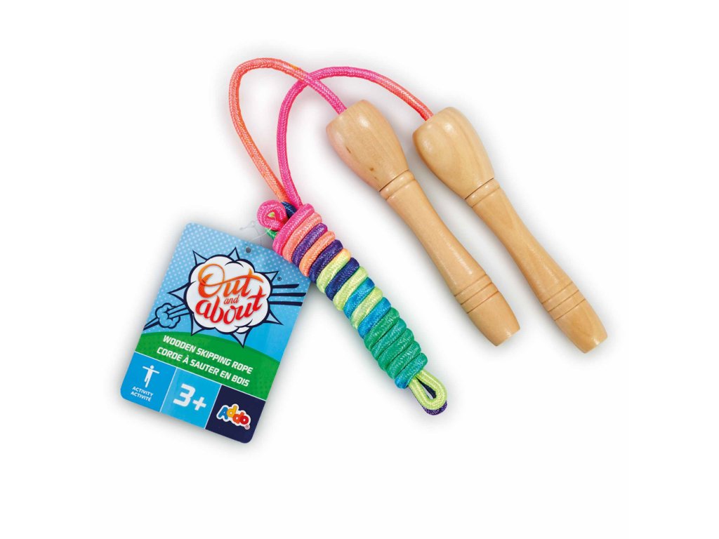 Toto tradiční dřevěné duhové švihadlo je skvělé pro hraní venku. Staňte se expertem se svým vlastní švihadlem, které vás udrží aktivní a zároveň si budete užívat krásné počasí venku. Při skákání přes švihadlo učíme děti hlavně radosti a potěšení z pohybu. Vylepšujeme hrubou motoriku, koordinaci pohybu. Délka švihadla 202 cm - délku lze upravit odšroubováním rukojeti a zkrácením lana dle potřeby. Délka rukojeti: 14,5cm. Věk: 3+