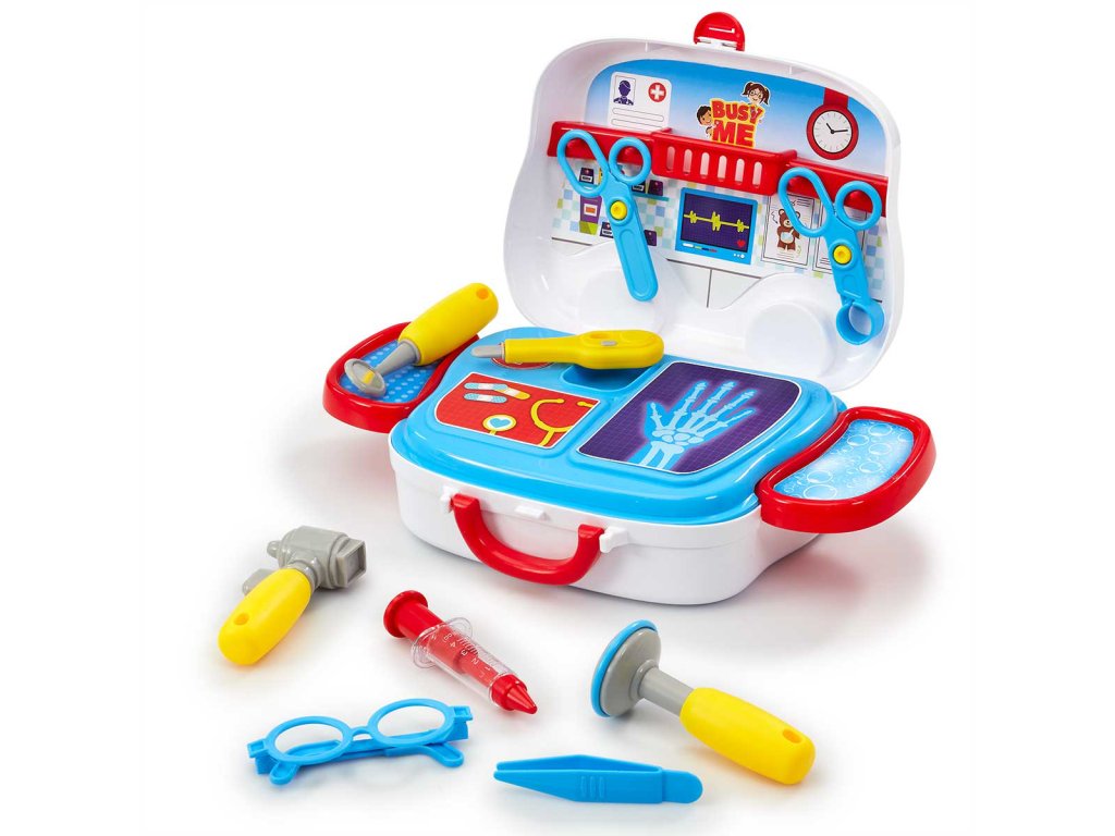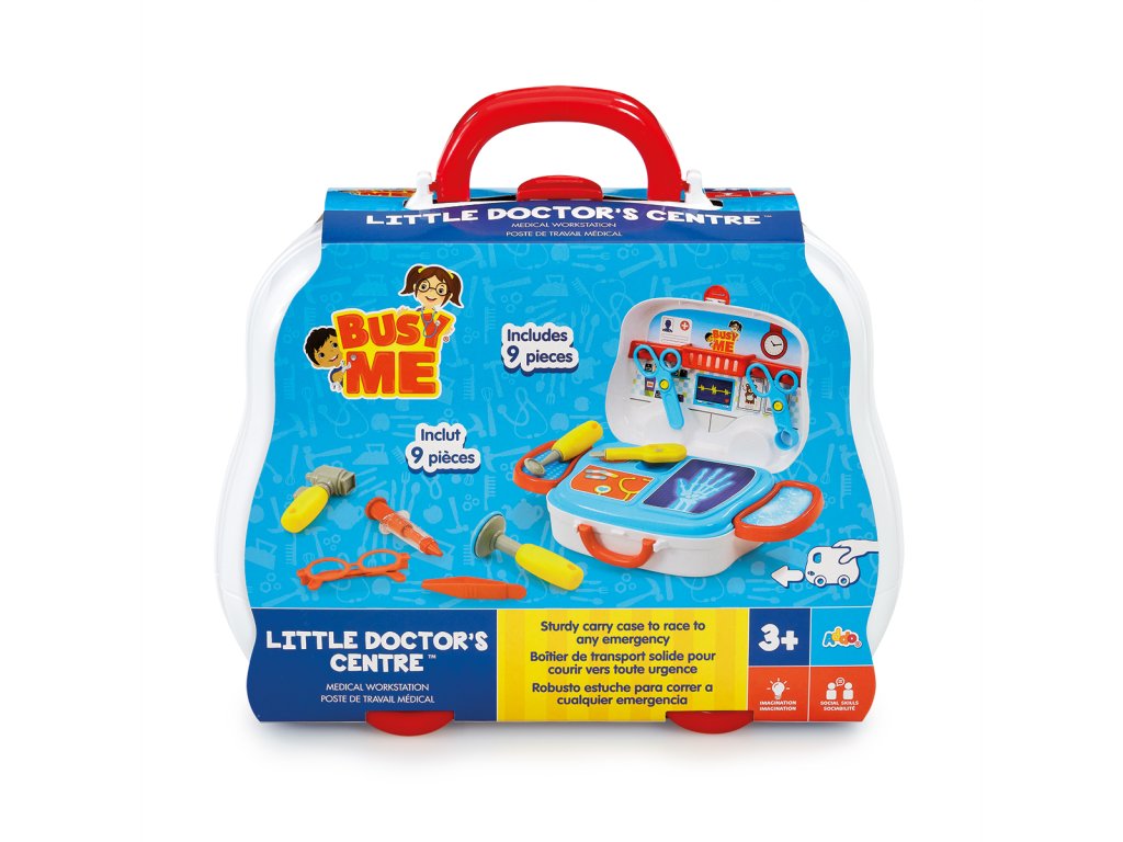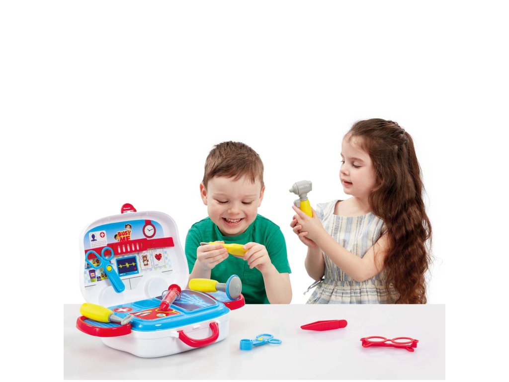 Doktorský kufřík obsahuje veškeré potřebné nástroje k vyšetření pacientů. Stetoskop a otoskop vydávají realistické zvuky a světla. Na obal kufříku mohou děti napsat své jméno, aby přátelé a rodina věděli, komu kufřík patří. Rozměry: 21,3x26,6x9,5cm. Věk: 3+