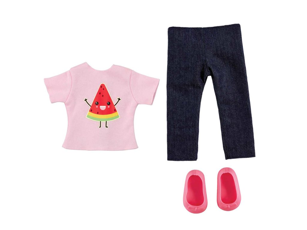 Oblečte svou panenku do pohodlného oblečení na všední den, a přesto bude vypadat jedinečně! Tato sada obsahuje tričko s ovocem, pohodlné džíny a boty Dolly. Rozměr balení: 25 x 20 x 5 cm. Věk: 3+