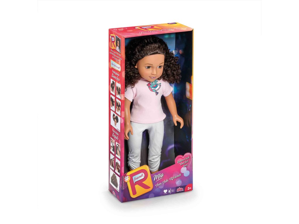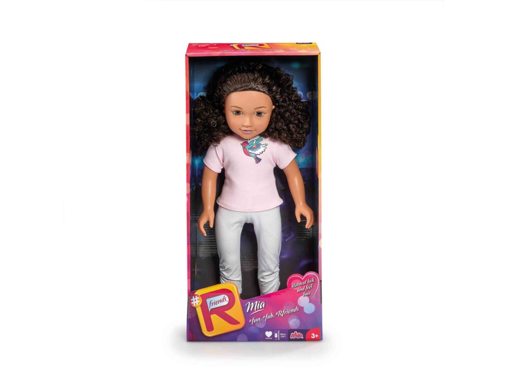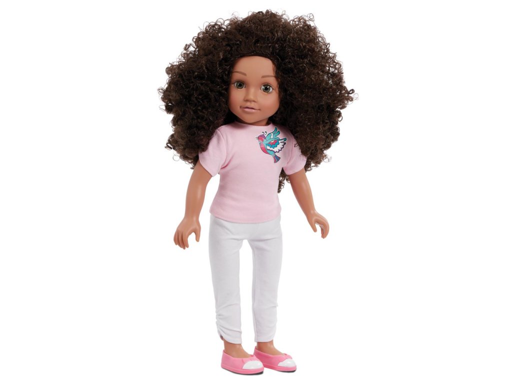 Pozdravte se s Miou, 46 cm vysokou panenkou, s nádhernými tmavě hnědými, kudrnatými vlasy, dlouhými 33 cm. Mia miluje čas strávený se svými přáteli. Ráda poslouchá hudbu a píše své vlastní písně. Miluje tanec a ráda navštěvuje koncerty a trampolínový park. Když je pěkné počasí, najdete Miu venku, jak jezdí v parku na kole. Mia je oblečená v měkké růžovém tričku s potiskem ptáků, v bílých legínách a růžovo-bílých balerínách. Panenku lze snadno převlékat. Dlouhé, realistické vlasy lze upravovat do copů. Inspiraci a návody na účesy naleznete v přiložené brožuře. Rozměr balení: 50 x 23 x 11 cm. Věk: 3+