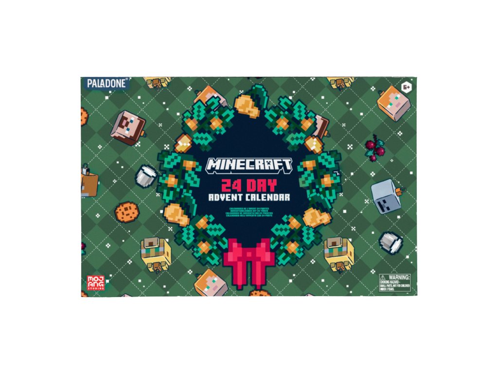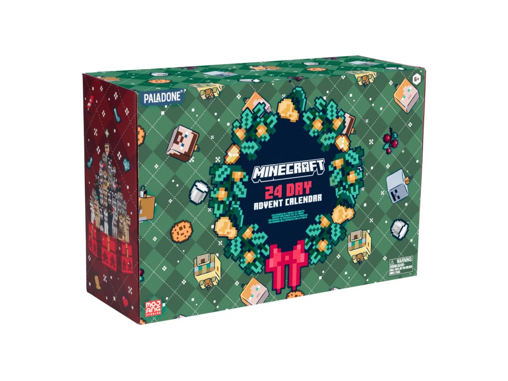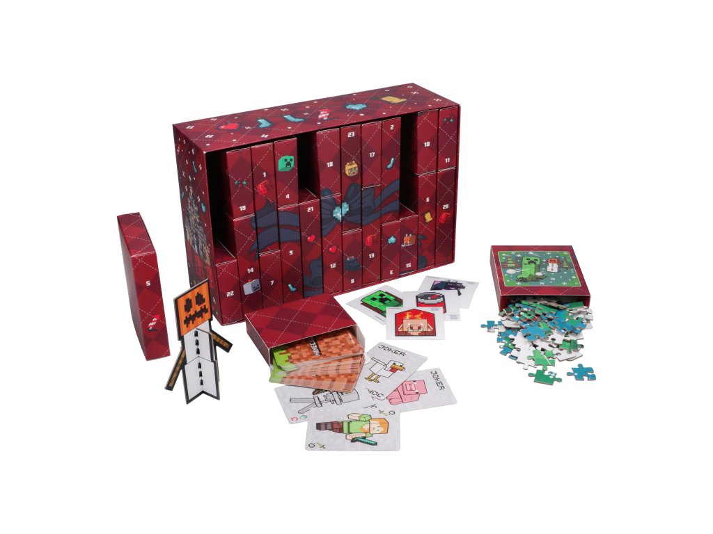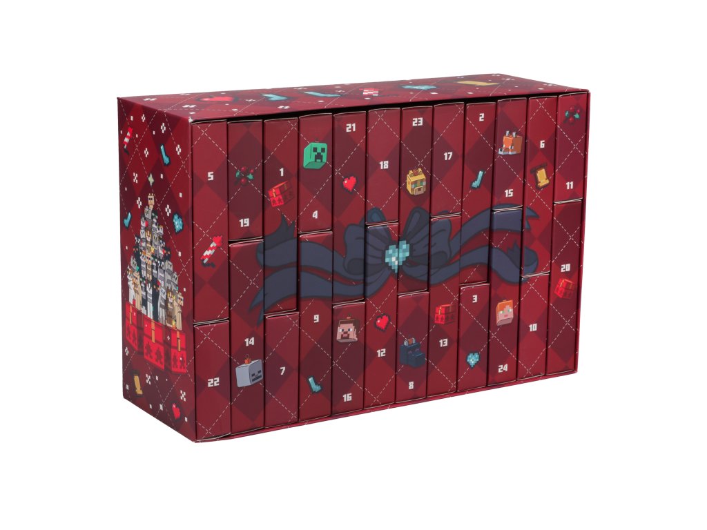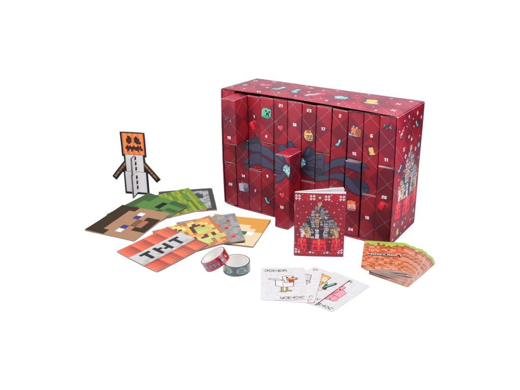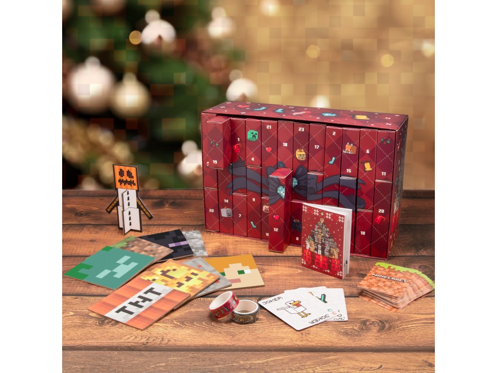 Adventní kalendář s 24 políčky k otevření a odpočítávání dnů do Vánoc. Kalendář je vyvedený do grafiky videohry Minecraft. Kalendář obsahuje 24 polí se dny v měsíci, které lze otevřít a najít zde jednu z 24 různých věcí v grafice ze světa Minecraft. Kalendář například obsahuje blok, hrací karty, puzzle a jiné předměty.