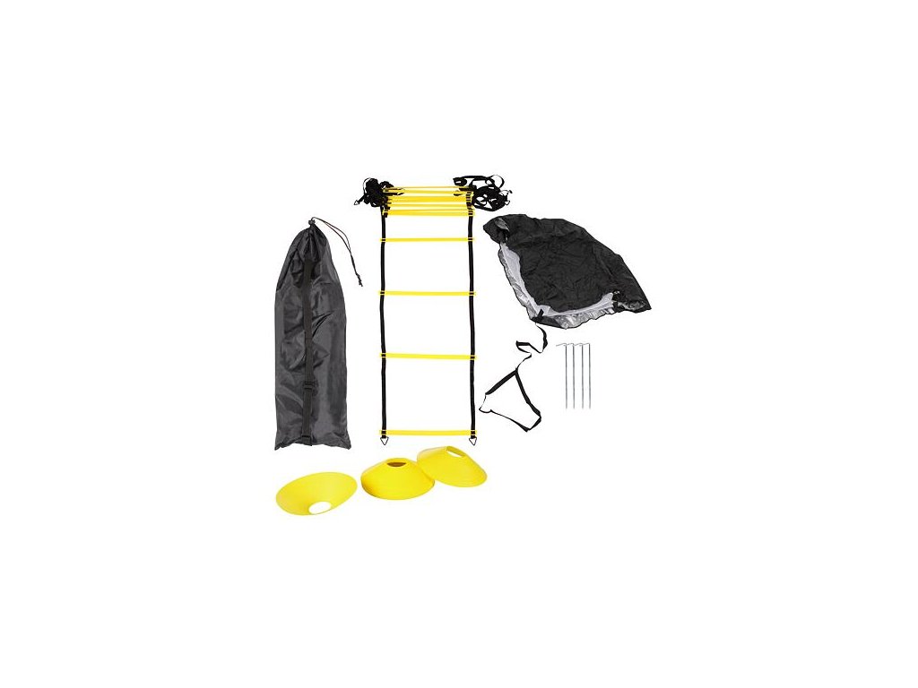 Agility set Merco Basic Kit je praktická pomůcka pro vaše tréninky v tělocvičně či venku. Agility překážky se hodí pro sportovce všech sportovních odvětví, kluby a školy. Díky agility sadě si zlepšujete svou kondici, efektivně trénujete rychlost a koordinaci dolních i horních končetin. Sada pro základní trénink Merco Basic Kit obsahuje odporový padák pro běhání, dvanáct vytyčovacích met a jeden agility žebřík s nastavitelnými lamelami a délkou 6 m. Součástí sady je i praktický vak z polyesteru s popruhem přes rameno pro snadné přenášení a uskladnění mezi jednotlivými tréninky. BASIC KIT: - set: 1x agility žebřík, 12x vytyčovací meta, 1x odporový padák - materiál: polypropylen, polyester - hmotnost sady: cca 0,95 kg - součástí praktický vak přes rameno - pro individuální trénink i pro celý tým