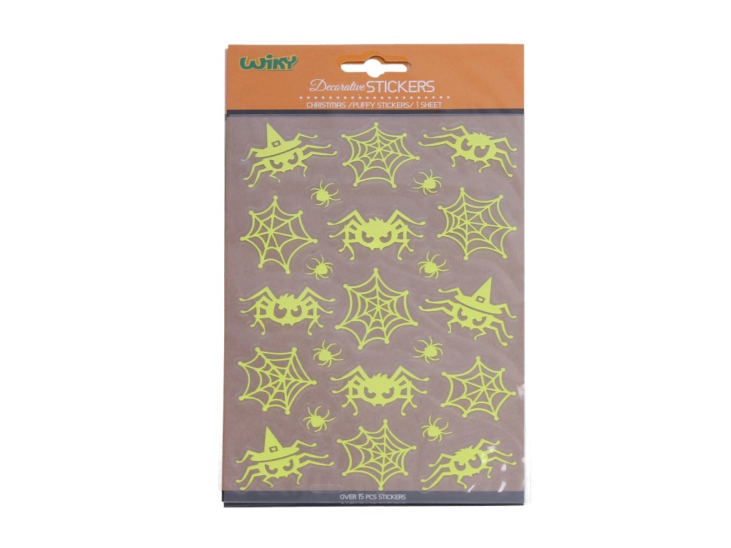 Nálepky svítící ve tmě o velikosti 25x14,4 cm Pavouci HALLOWEEN.