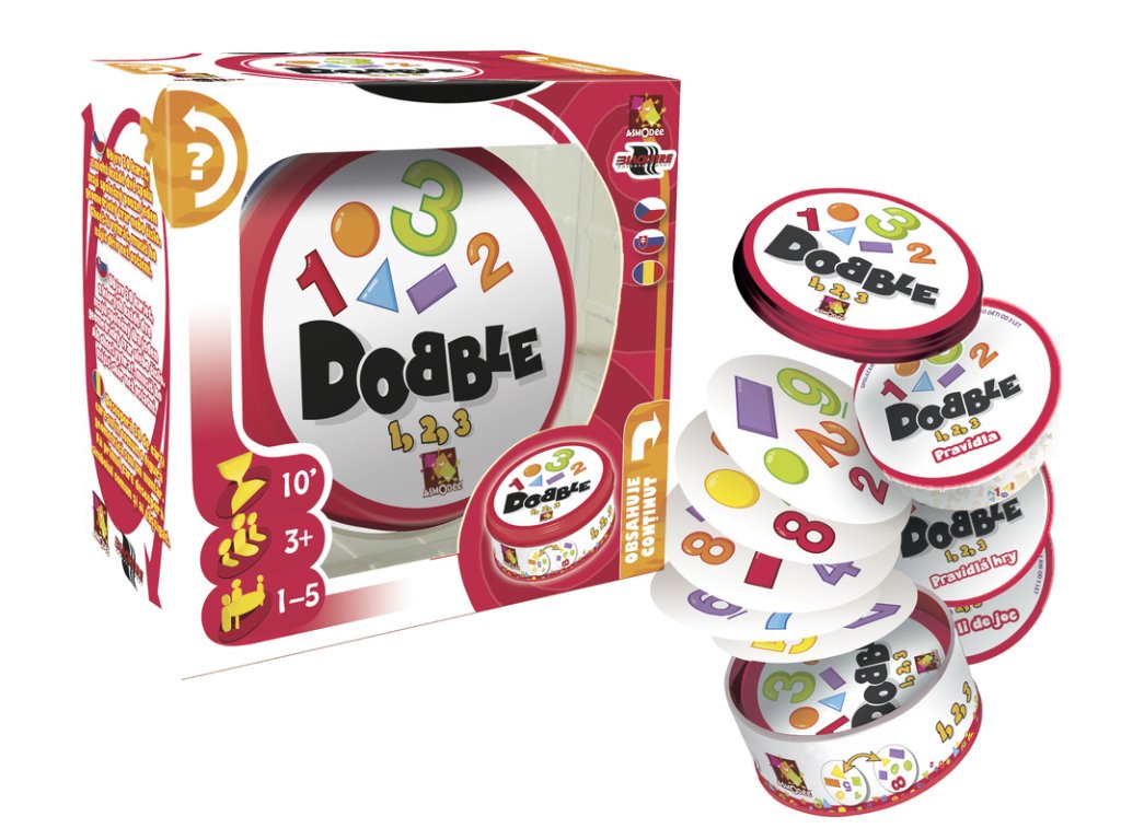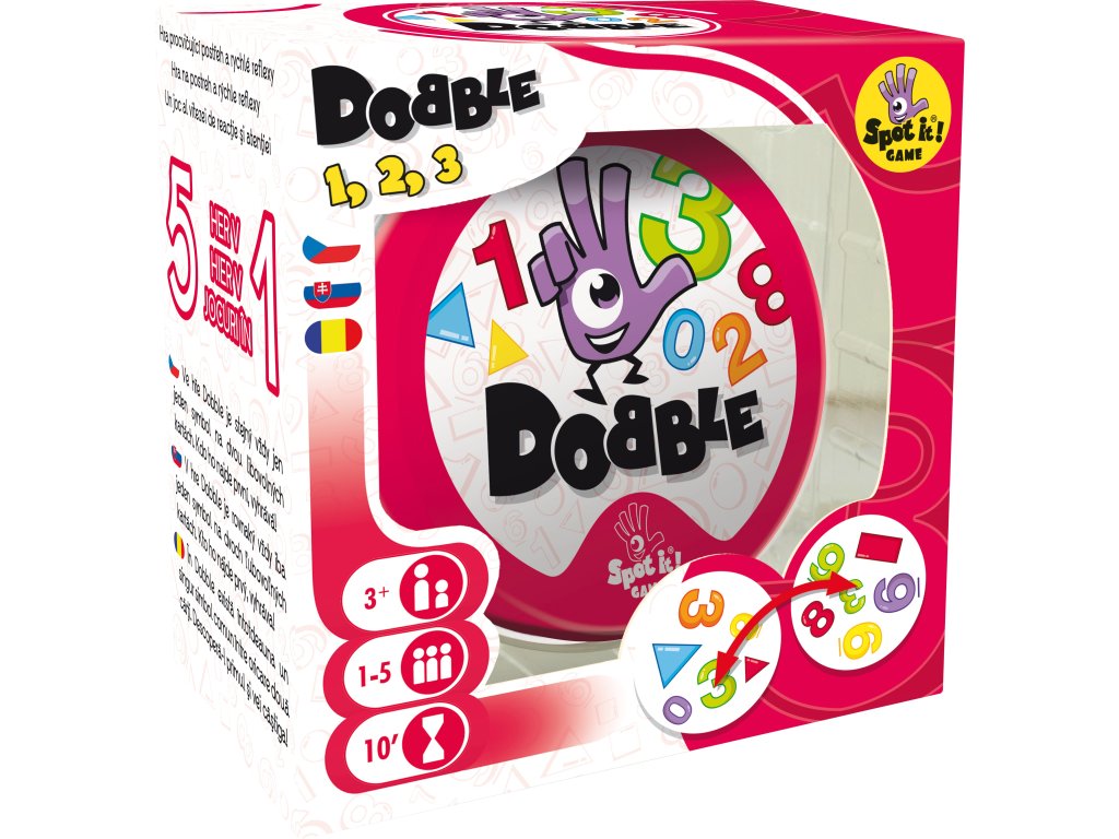 Dobble 1-2-3 je varianta oblíbené hry Dobble určená především pro menší děti, která při hraní přináší dětem pozvolný úvod do poznávání tvarů, čísel a barev.