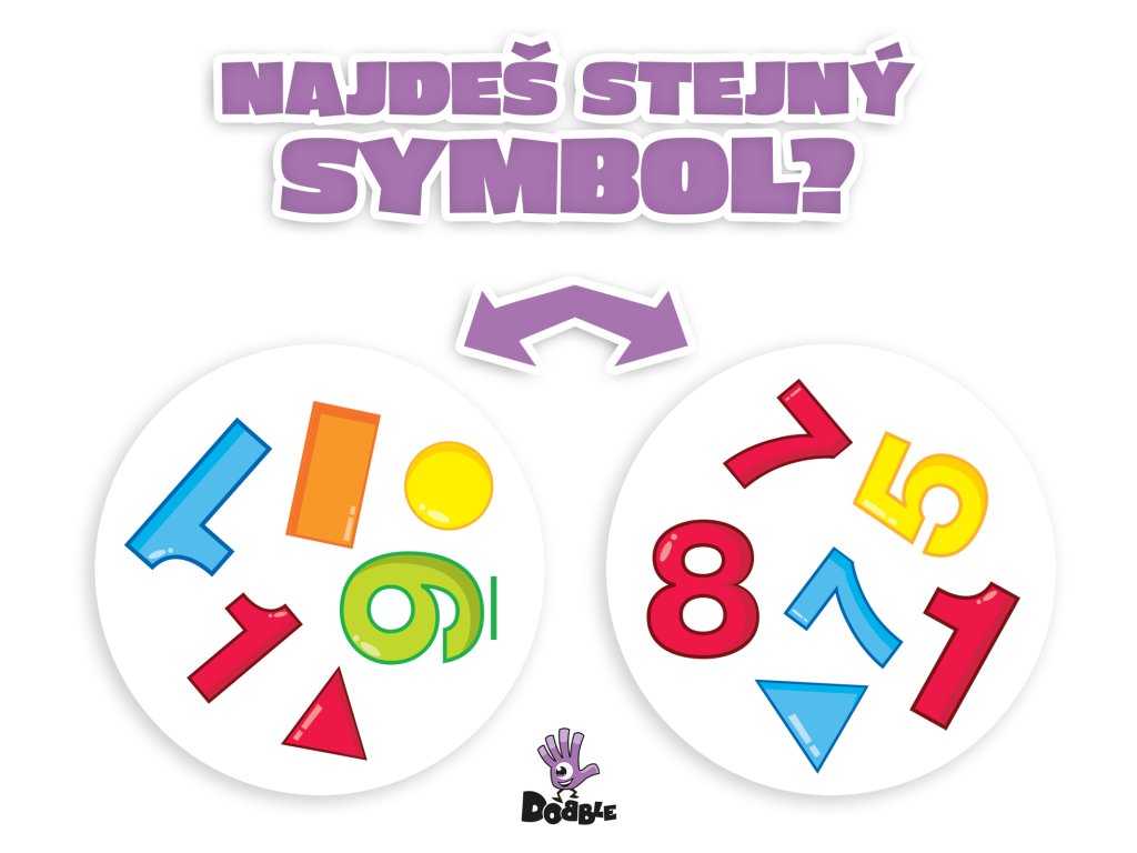 Rychlost, postřeh, reflexy! Dobble 1-2-3, to je 31 různých symbolů, 30 karet, 6 symbolů na kartě a každé dvě karty spolu mají společný jen jeden symbol!