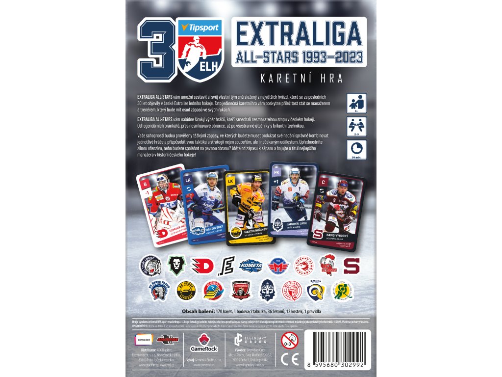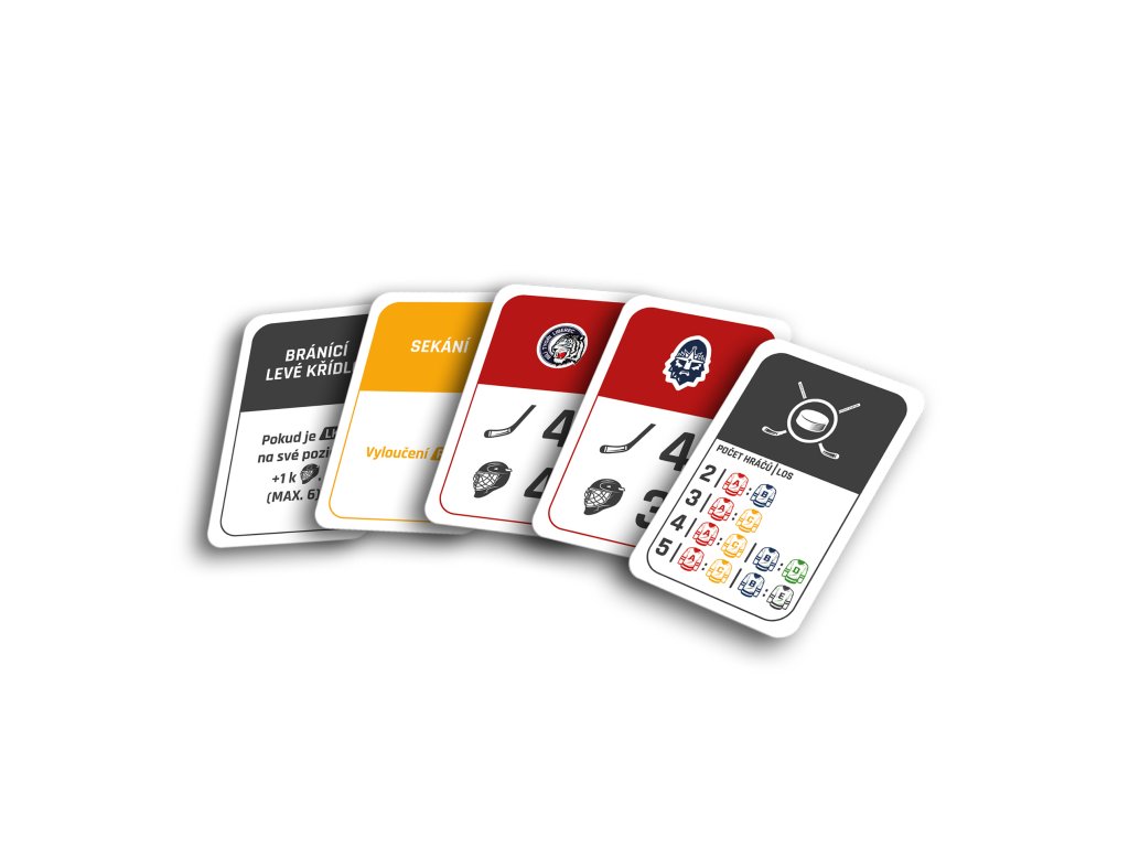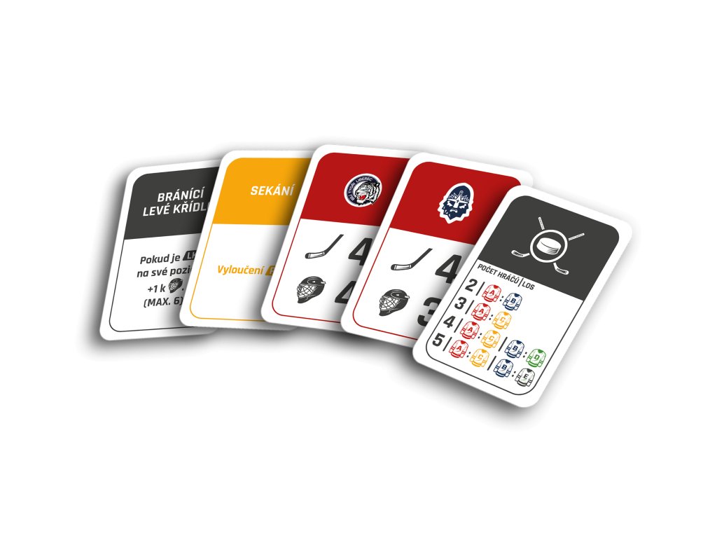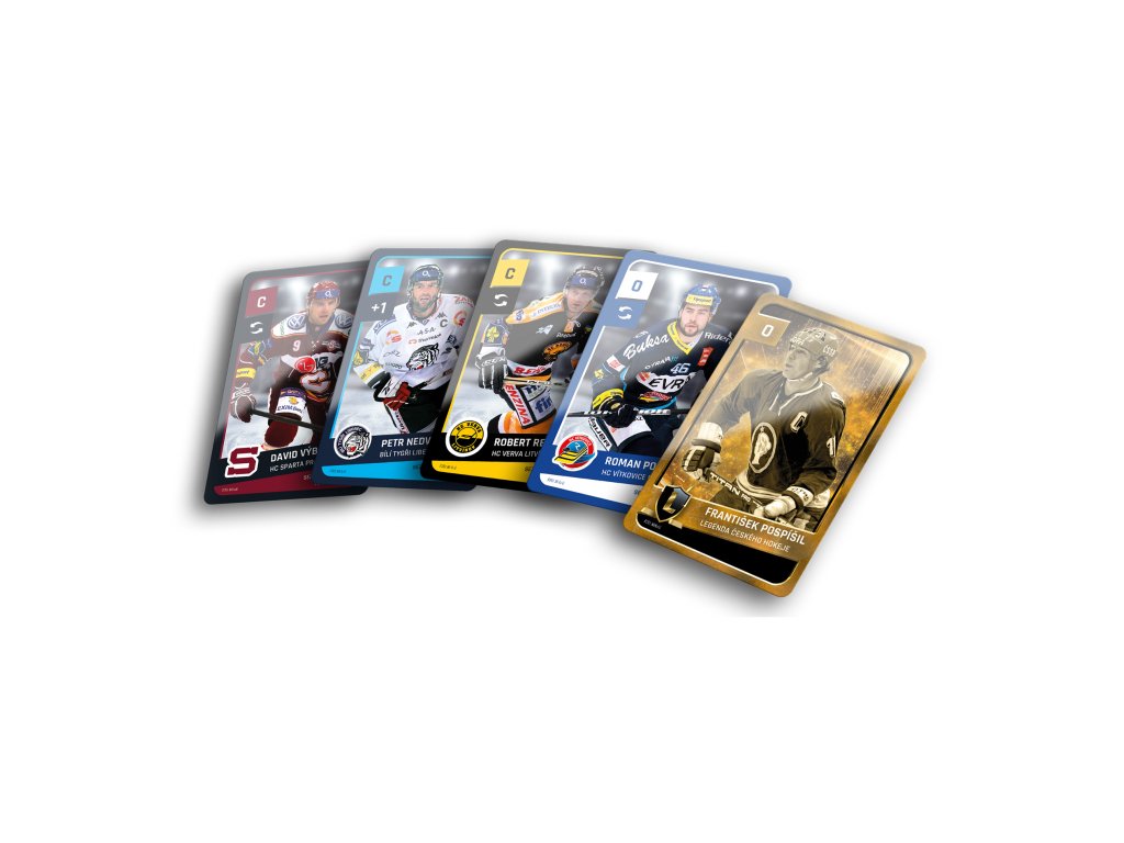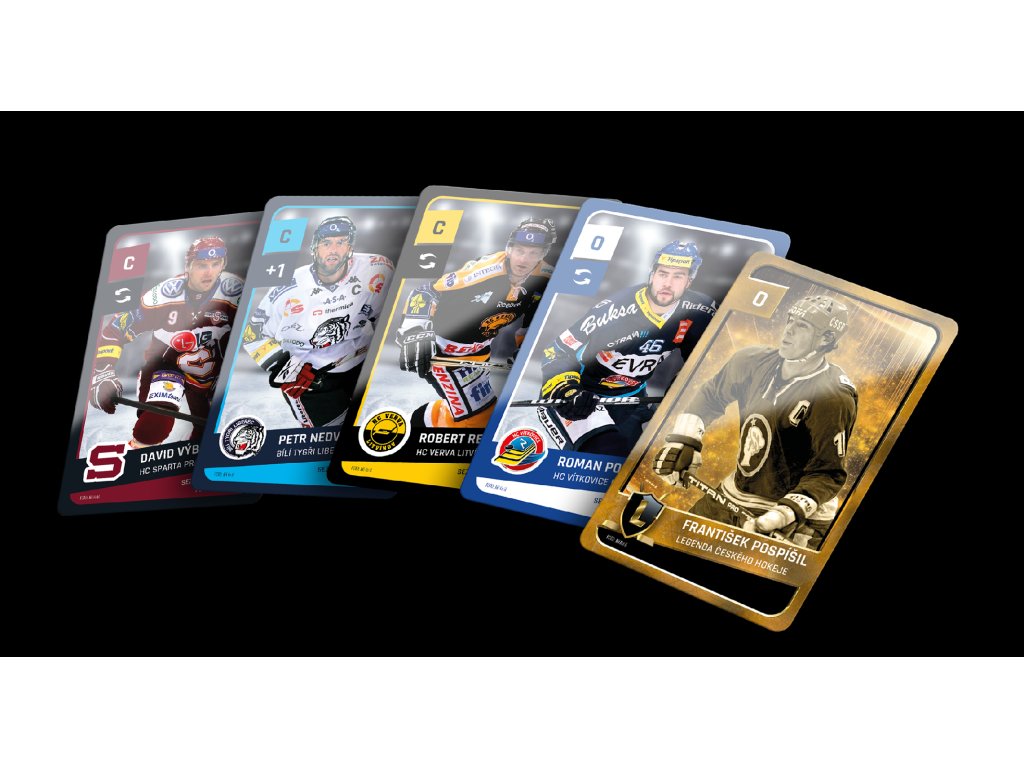 Ve hře najdete 6 karet hokejistů (centr, levé křídlo, pravé křídlo, 2 obránci, brankář) z každého ze 14 klubů, které odehrály extraligovou sezónu 2022/2023 + 3 dalších týmů, které ve třicetileté historii Extraligy získaly titul a navíc 8 karet legend předextraligové éry. Na kartách najdete pozici hráče, klubovou příslušnost, kolik let strávil v Extralize v daném klubu a kolik s ním získal titulů. Dva hráči z každého klubu maní navíc přiřazenou speciální schopnost, díky které mohou během zápasů manipulovat s kostkami.