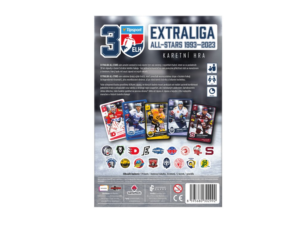 Karetní hra Extraliga All-Stars vám umožní sestavit si svůj vlastní tým snů a zahrát si zápasy proti živým protihráčům i „virtuálním“ soupeřům. Ve hře najdete všechny týmy ze sezóny 2022/2023 a jako bonus také týmy, které v třicetileté historii vyhrály extraligový titul. Každý tým je reprezentovaný šesticí hokejistů z celé samostatné extraligové historie, kteří byli vybráni ve spolupráci s jednotlivými hokejovými kluby. Ve hře pak najdete i největší osobnosti československého hokeje ve formě karet legend bez klubové příslušnosti. Je jen na vás, jak bude vypadat váš tým a jestli ho dokážete dovést až k titulu.