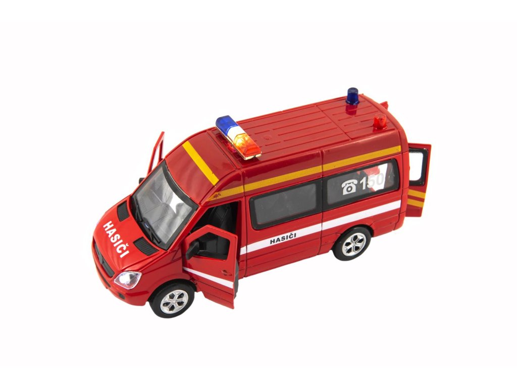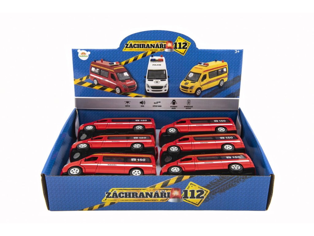 Auto hasiči kovové 15cm na baterie se světlem se zvukem na zpětné natažení 6ks v boxu