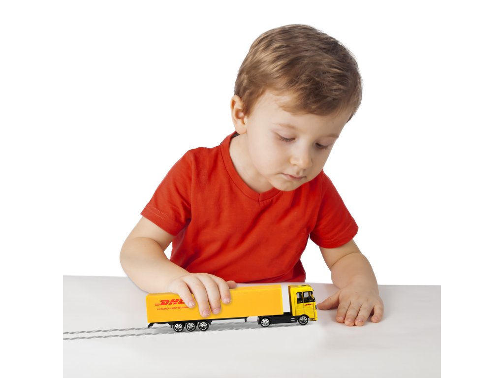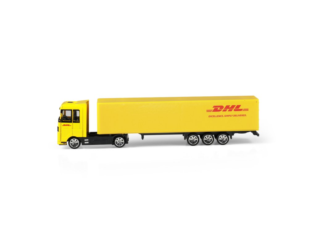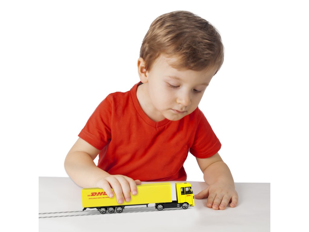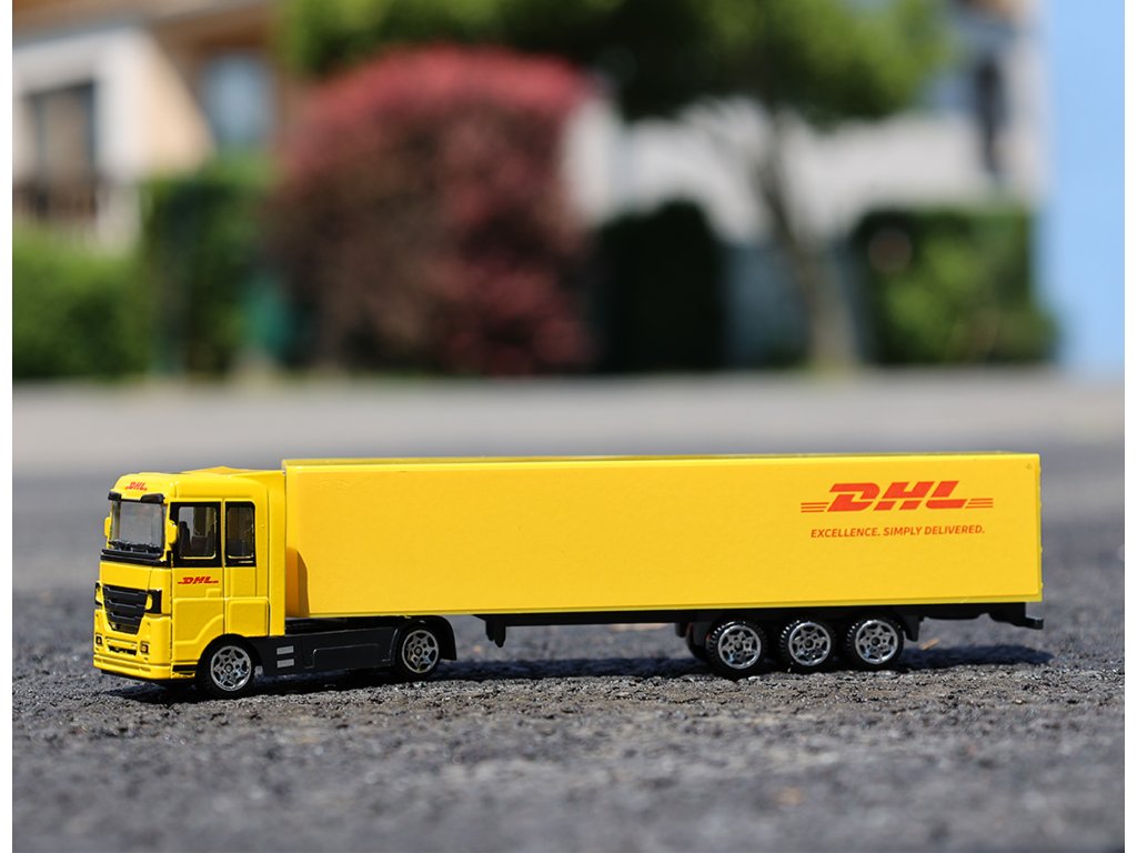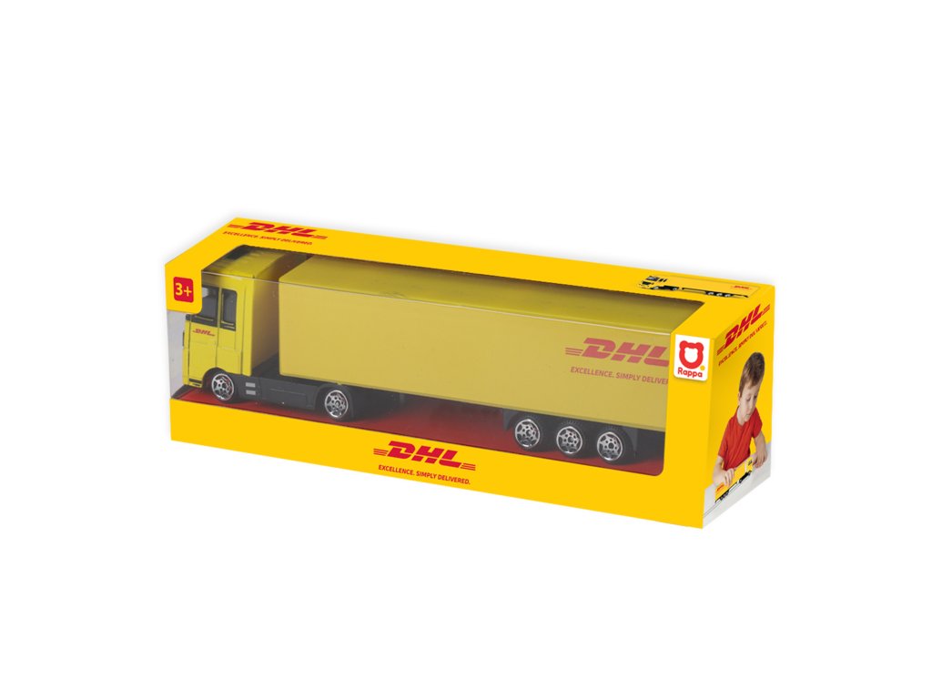 Pořiď si tento originální kamion s logem přepravní společnosti DHL a rozšiř si tímto svůj vozový park! Model kamionu 1:87 je vyroben z kovu, přívěs je vyroben z PVC. Model je dlouhý cca 20 cm a jezdí na volný chod. Tahle unikátní hračka nadchne všechny kluky, tak obohať svou sbírku o tento parádní kousek!