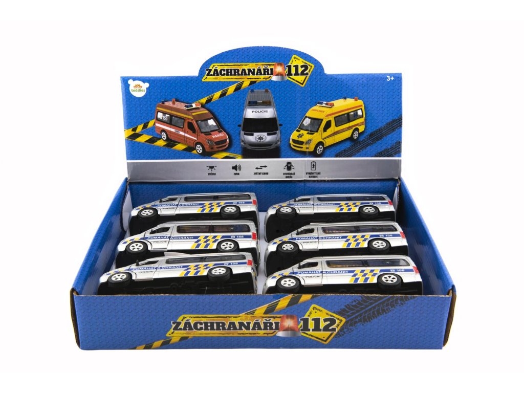 Auto policie kovové 15cm na baterie se světlem se zvukem na zpětné natažení 6ks v boxu
