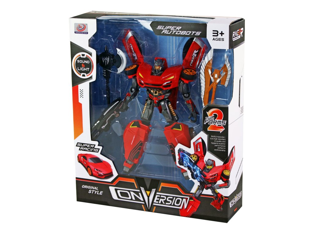Moderní plastový autorobot CONVERSION se zvukovým a světelným efektem ti nesmí v pokojíčku chybět! Autorobot vyžaduje 3 ks baterií typu LR41/AG13, které jsou součástí balení. Stisknutím tlačítka na těle robota začne robot vydávat zvuk spolu se světelným efektem. A co ty? Máš už vlastního autorobota ve svém pokojíčku?