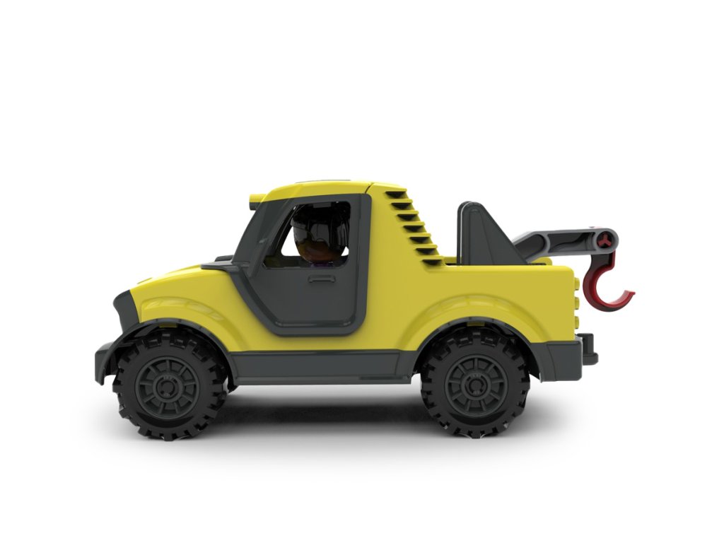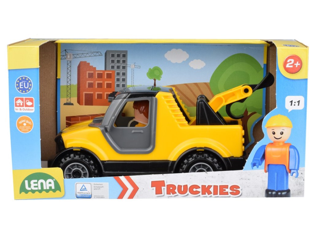 Truckies odtahový vůz z kvalitního plastu a velmi pevnou stavbou. Plně mechanicky funkční. Obsahuje odklopitelnou kabinu s aktivním panáčkem.