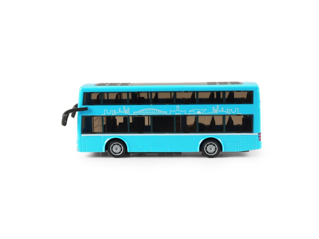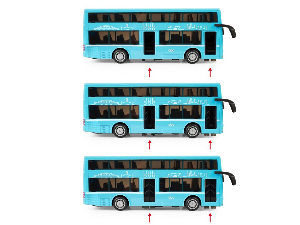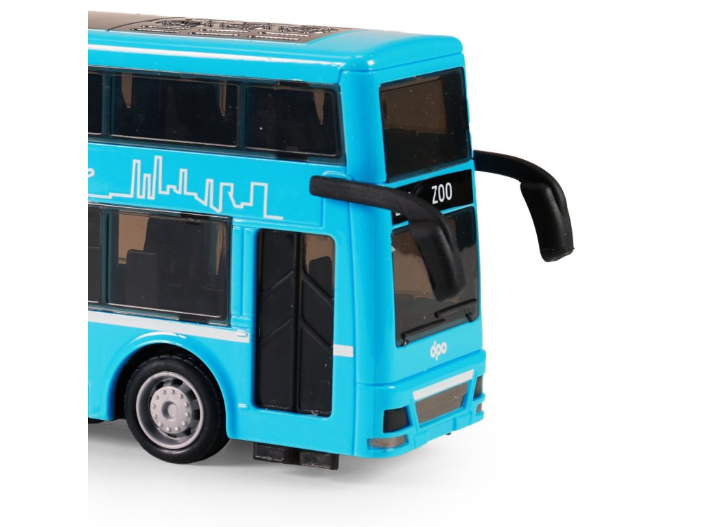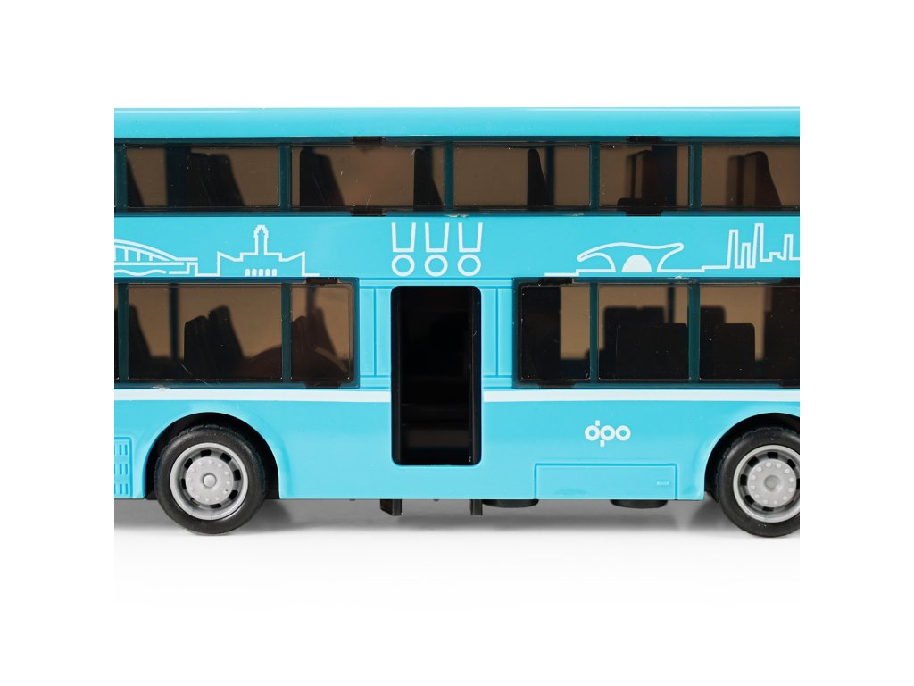 Moderní dvoupodlažní autobus v modré barvě, který jezdí na setrvačník je perfektním dárkem pro všechny nadšence hromadné dopravy. Dveře lze manuálně otevřít a zavřít. Autobus je vyrobený z plastu, je dlouhý 19 cm a je velmi podobný autobusu, který jezdí ulicemi v Ostravě. Tato hračka byla vyrobena ve spolupráci s Dopravním podnikem města Ostravy a městem OSTRAVA!!!