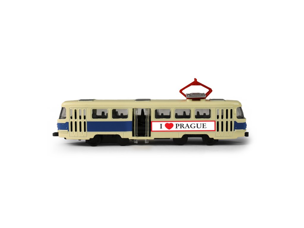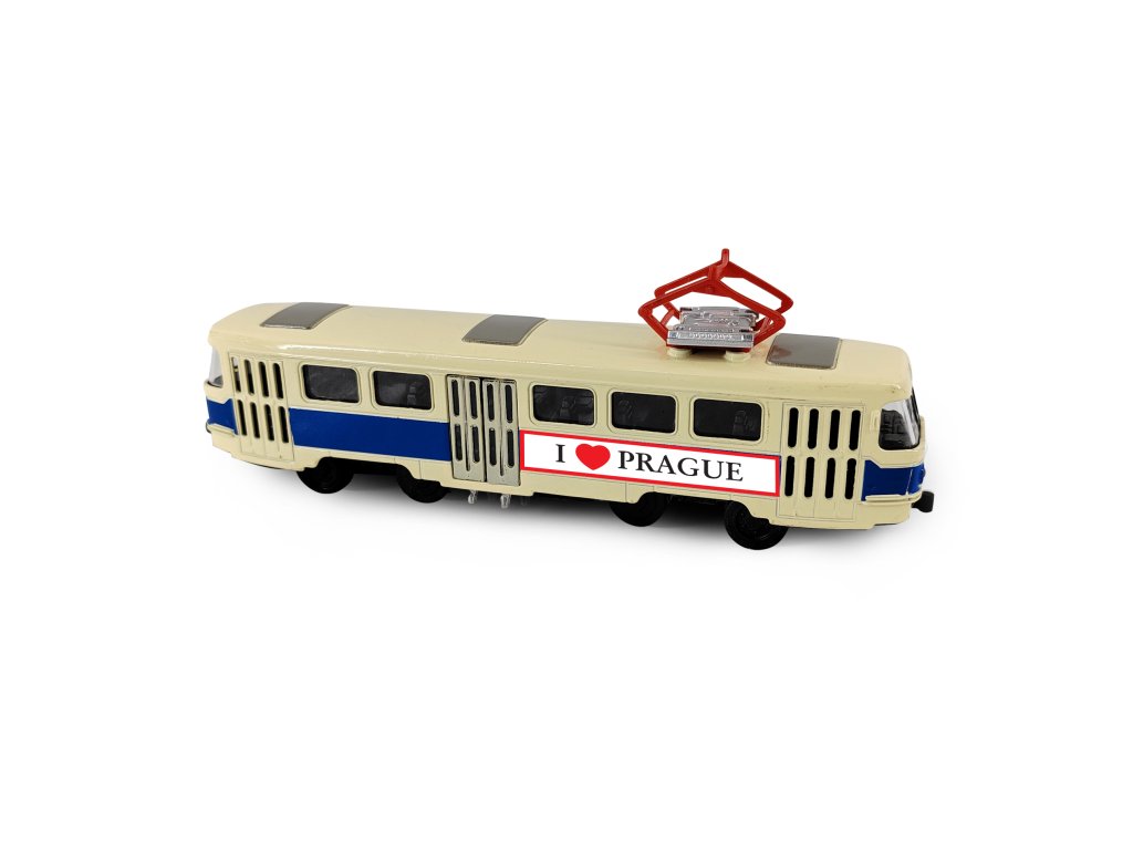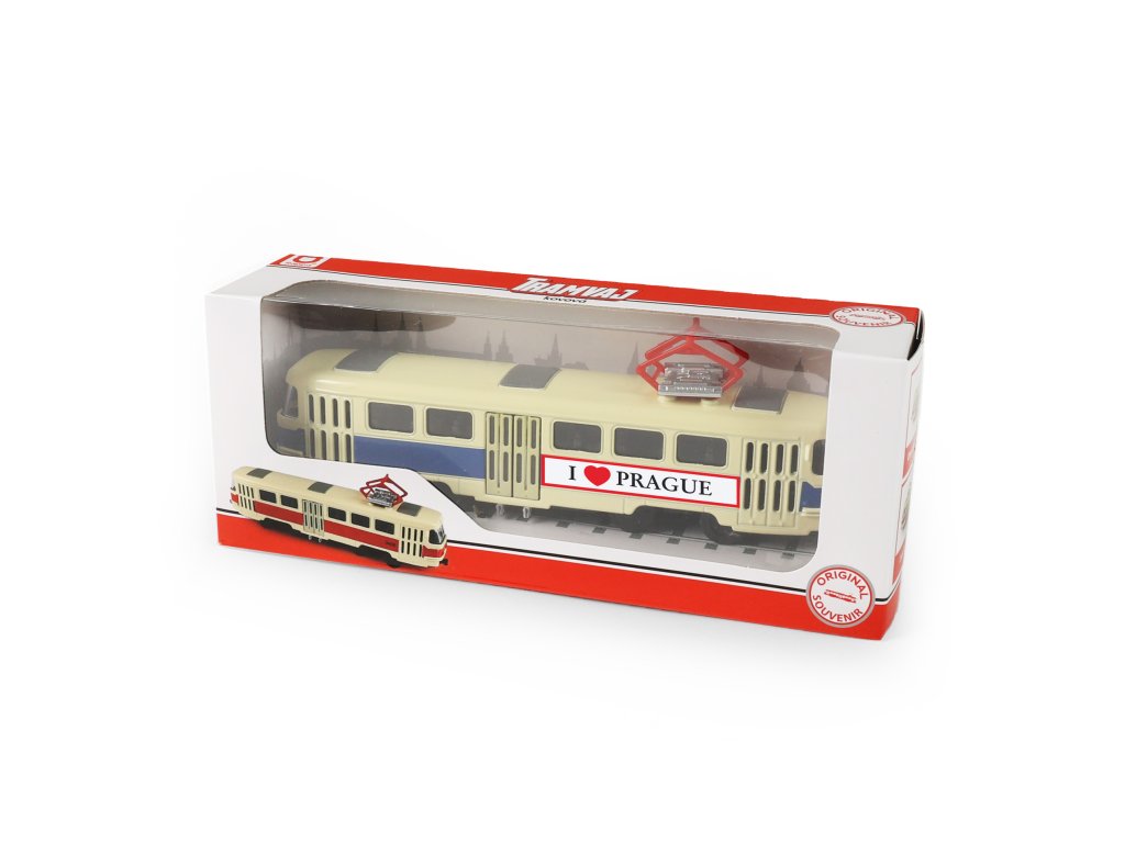 Originální kovová retro tramvaj T3 s nápisem PRAGUE a měřítkem 1:87, která jezdí na zpětný chod. Délka tramvaje je cca 16 cm a prostřední dveře je možné manuálně otevřít. Jedná se o nejpočetněji vyráběný tramvajový vůz na světě. Takže ty, jako správný fanda těchto sběratelských kousků ji rozhodně musíš mít!