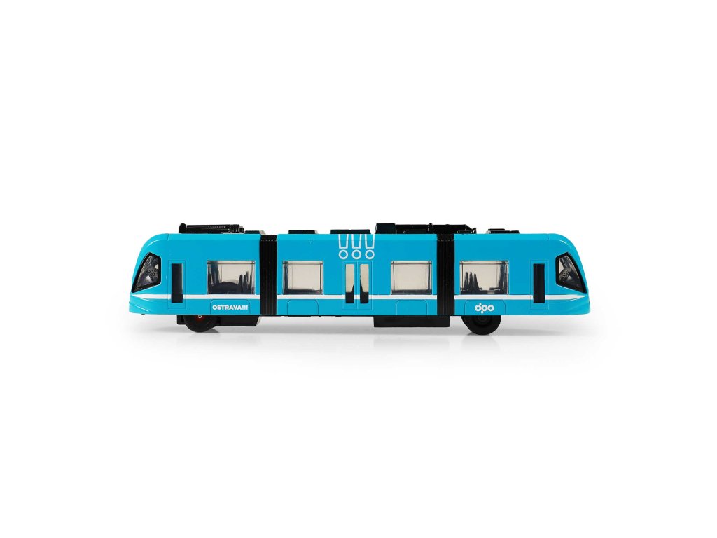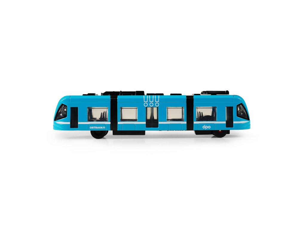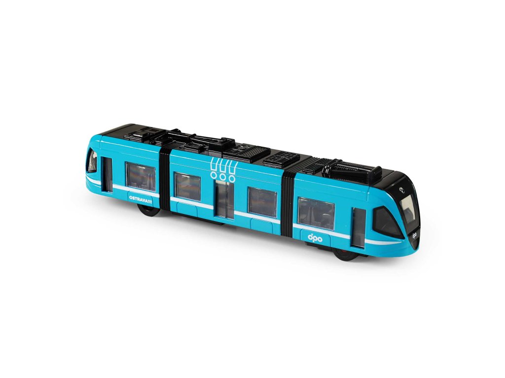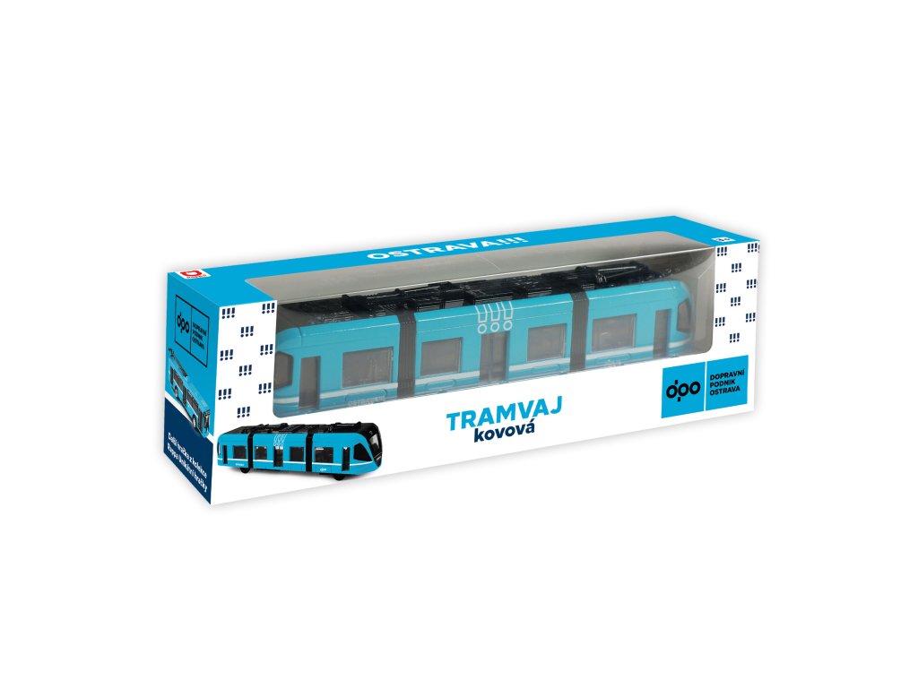 Moderní tramvaj v modré barvě, která jezdí na zpětný chod je perfektním dárkem pro všechny tramvajové nadšence. Dveře na jedné straně vozu lze manuálně otevřít a zavřít pomocí pantografu na střeše vozu. Tramvaj je vyrobená z kovu, je dlouhá 23 cm a je velmi podobná tramvaji, která jezdí ulicemi v Ostravě. Tato hračka byla vyrobena ve spolupráci s Dopravním podnikem města Ostravy a městem OSTRAVA!!!