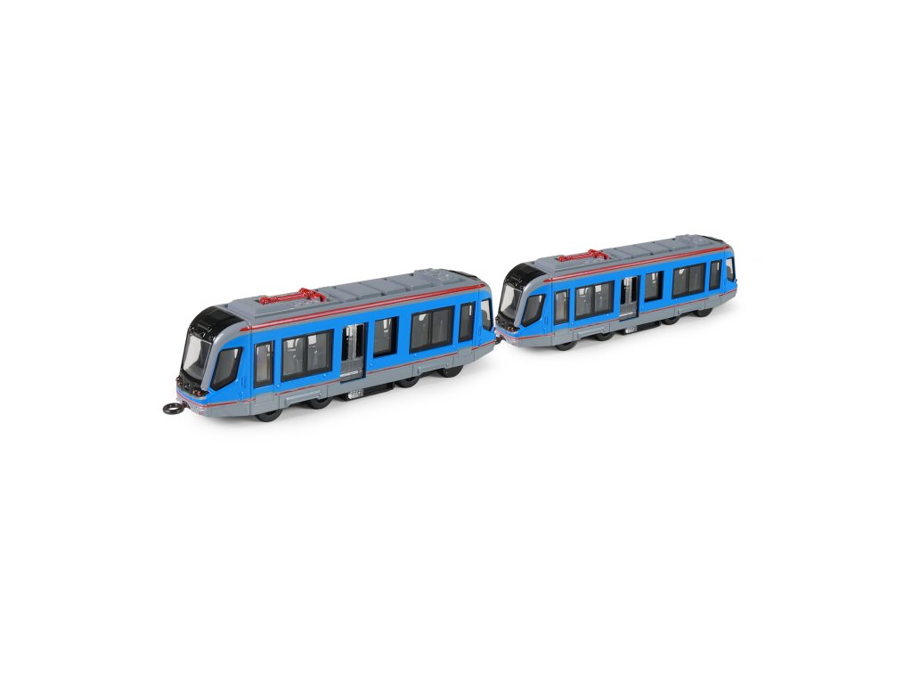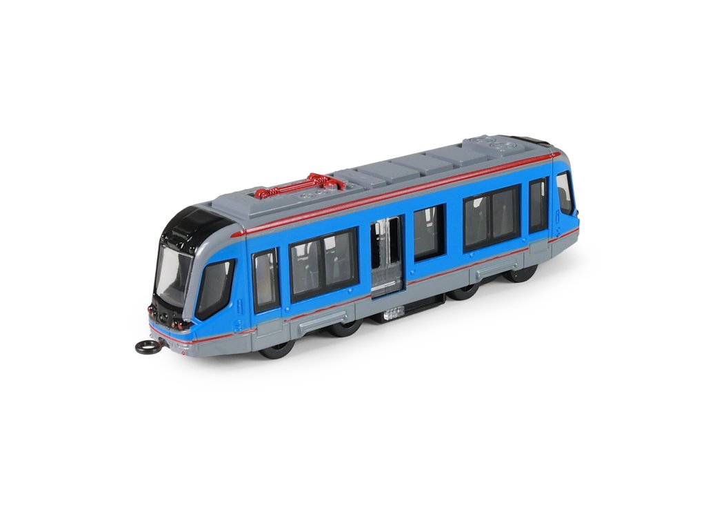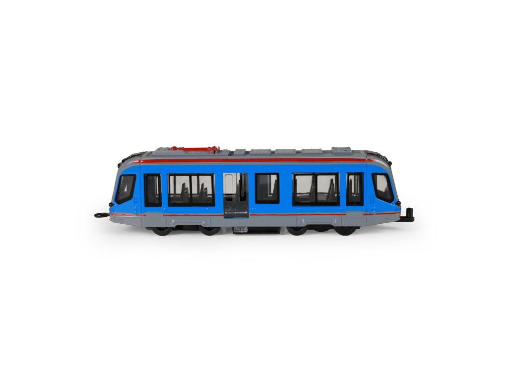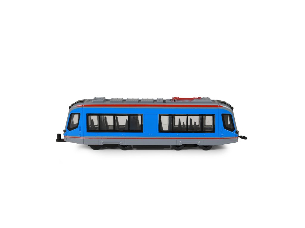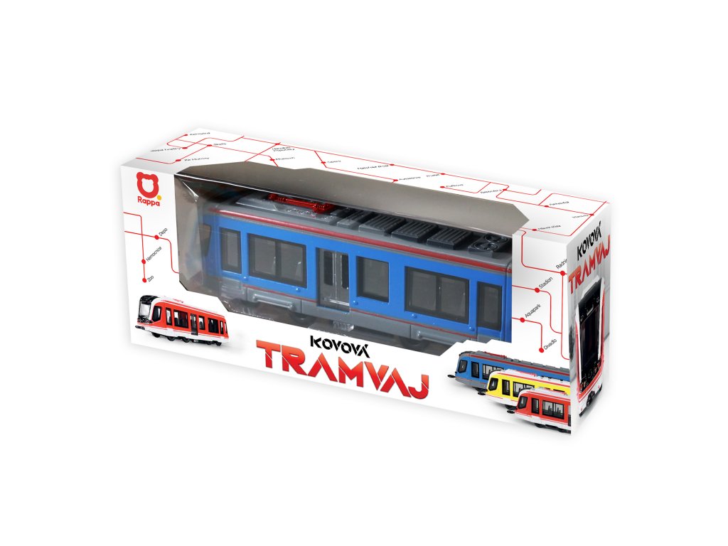 Originální kovová tramvaj modré barvy, která jezdí na zpětný chod. Délka tramvaje je 20 cm. Dveře lze manuálně otevřít a zavřít pomocí páčky umístěné pod dveřmi vozu. Tato naše unikátní hračka je skvělým dárkem nejen pro vaše děti.