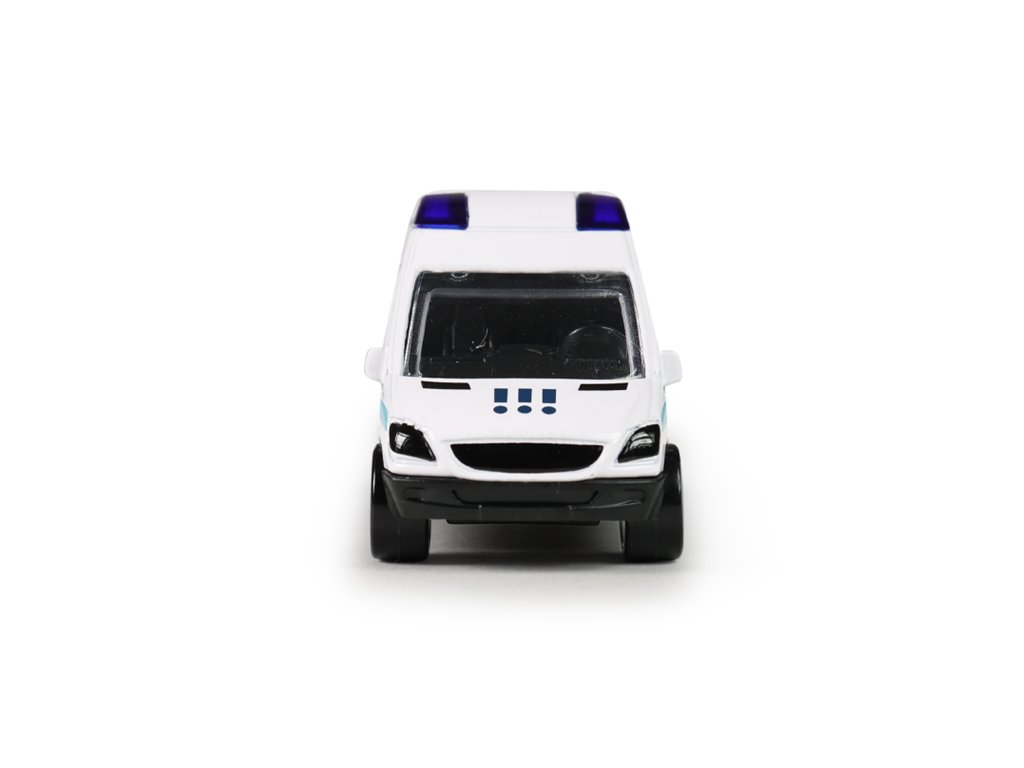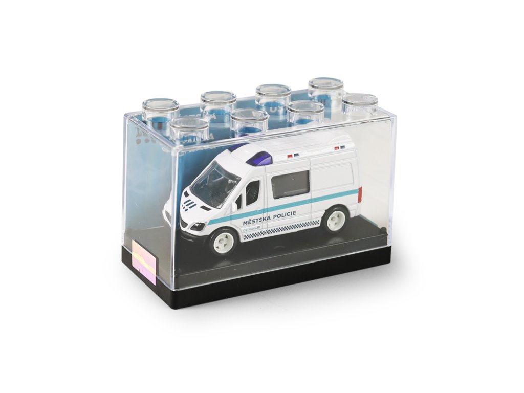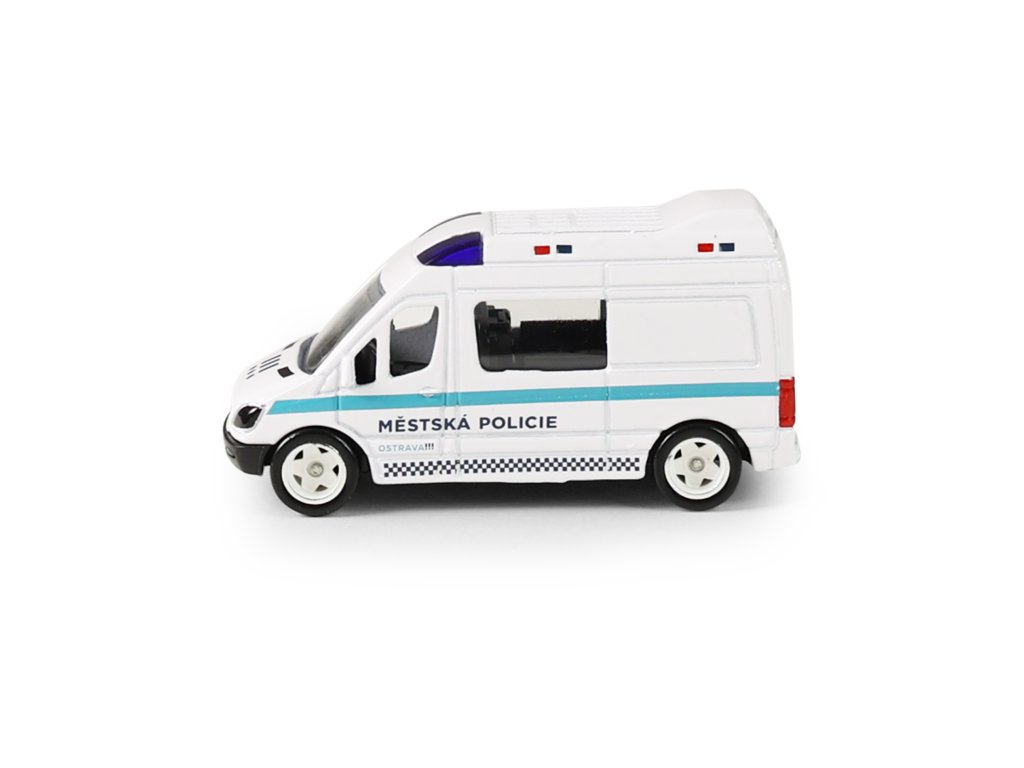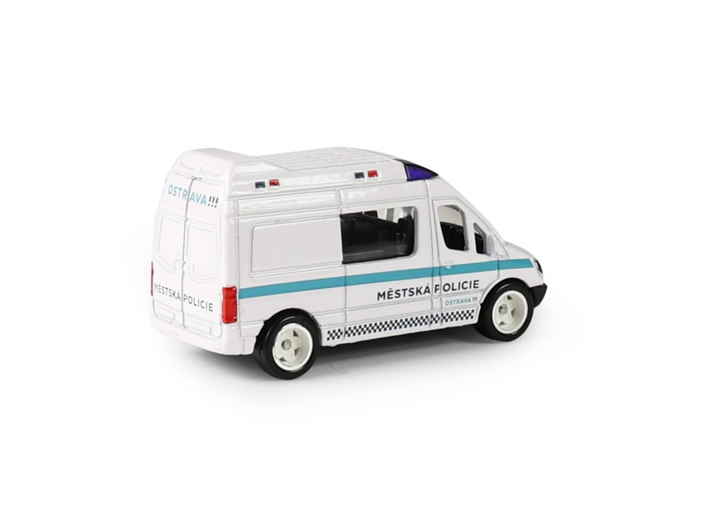 Rozšiř si svůj vozový park a pořiď si tuhle originální kovovou dodávku policie Ostrava. Auto jezdí na volný chod a jeho délka je 7 cm.
