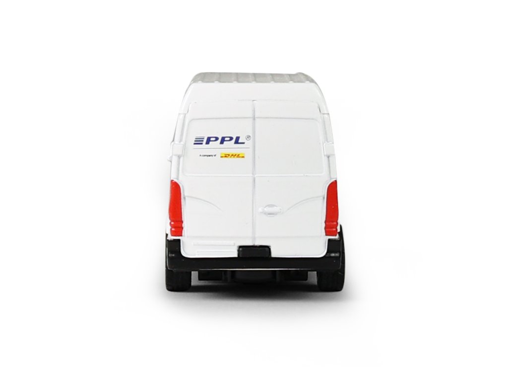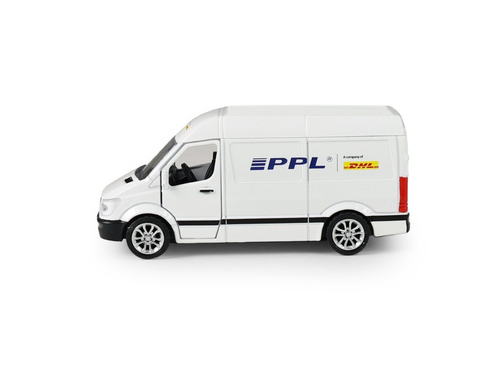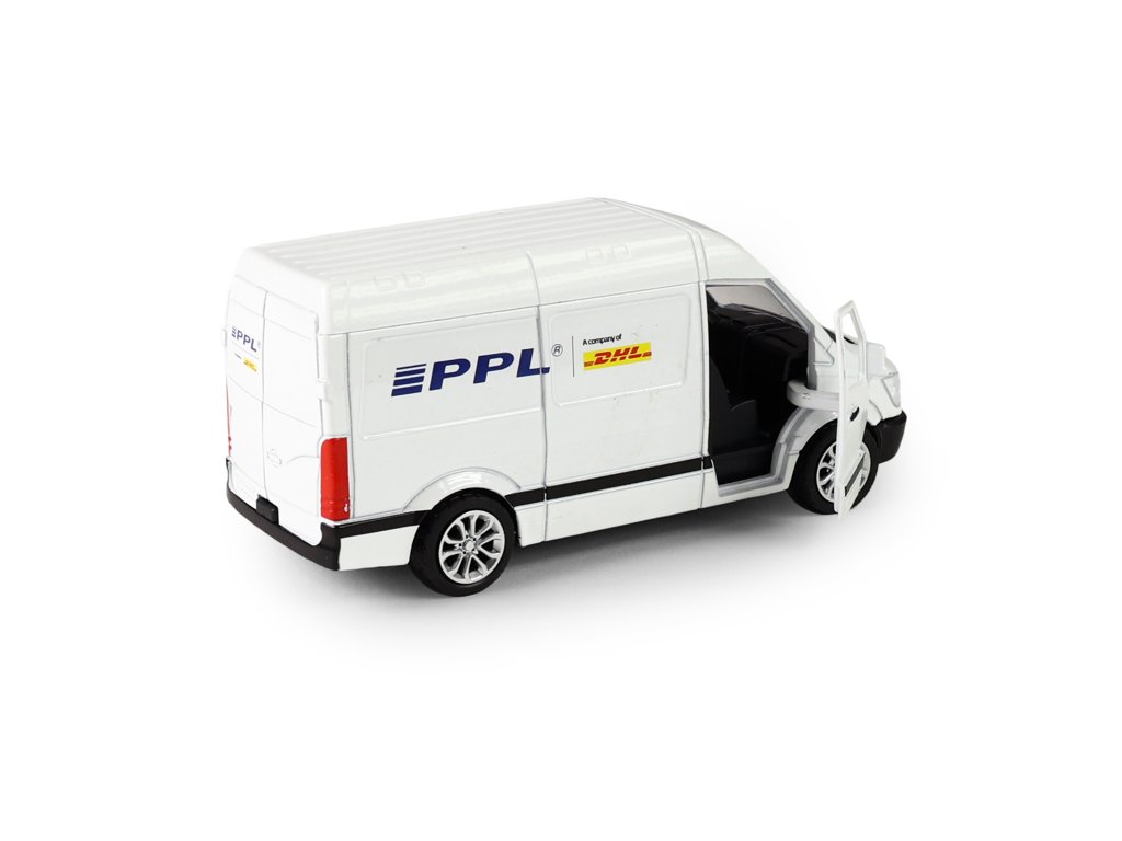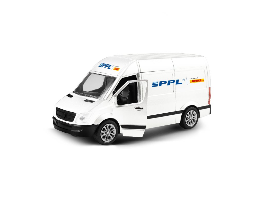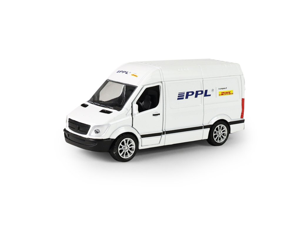 Rozšiř si svůj vozový park a pořiď si tuhle originální kovovou dodávku s logem přepravní společnosti PPL. Auto má otevírací přední dveře. Jezdí na zpětný chod a jeho délka je 12 cm.