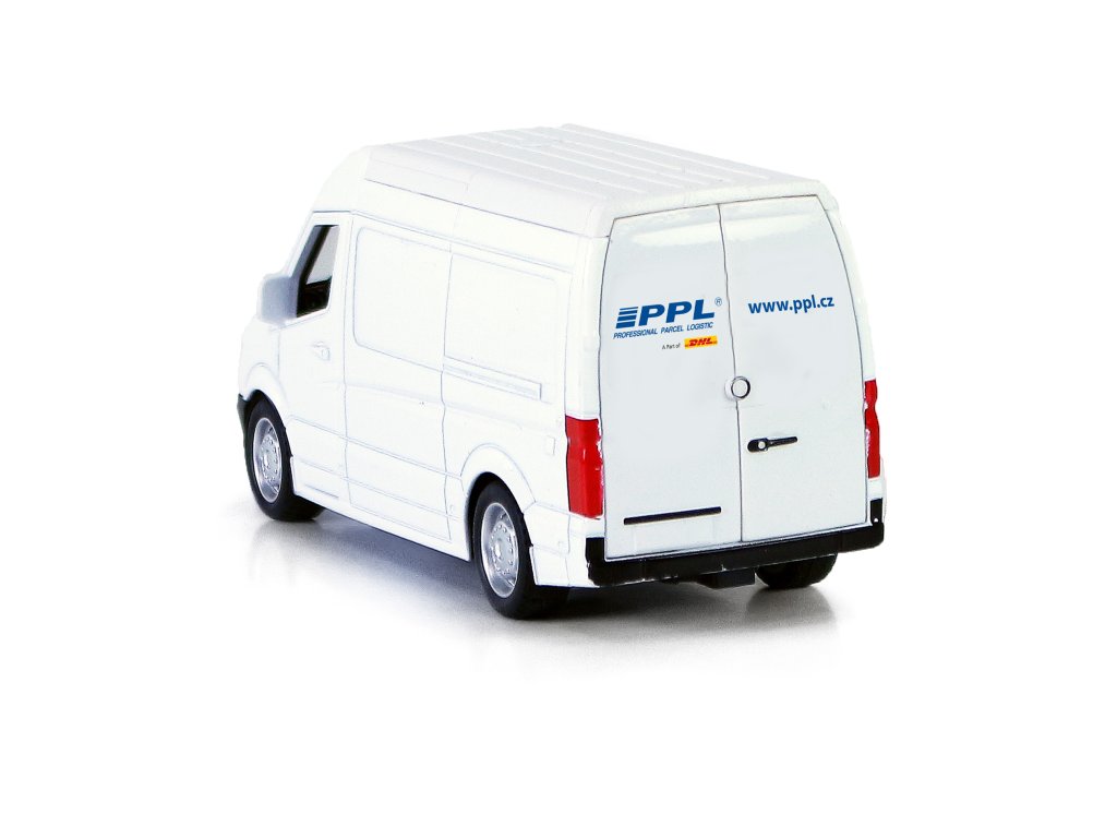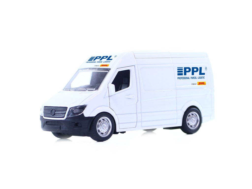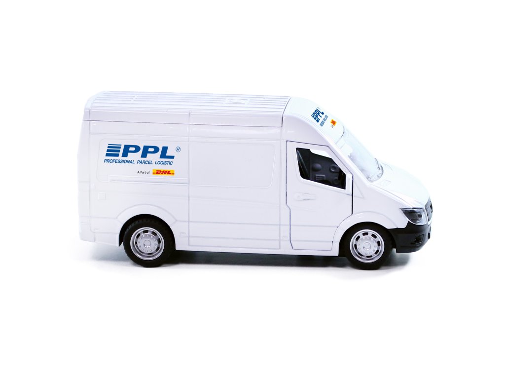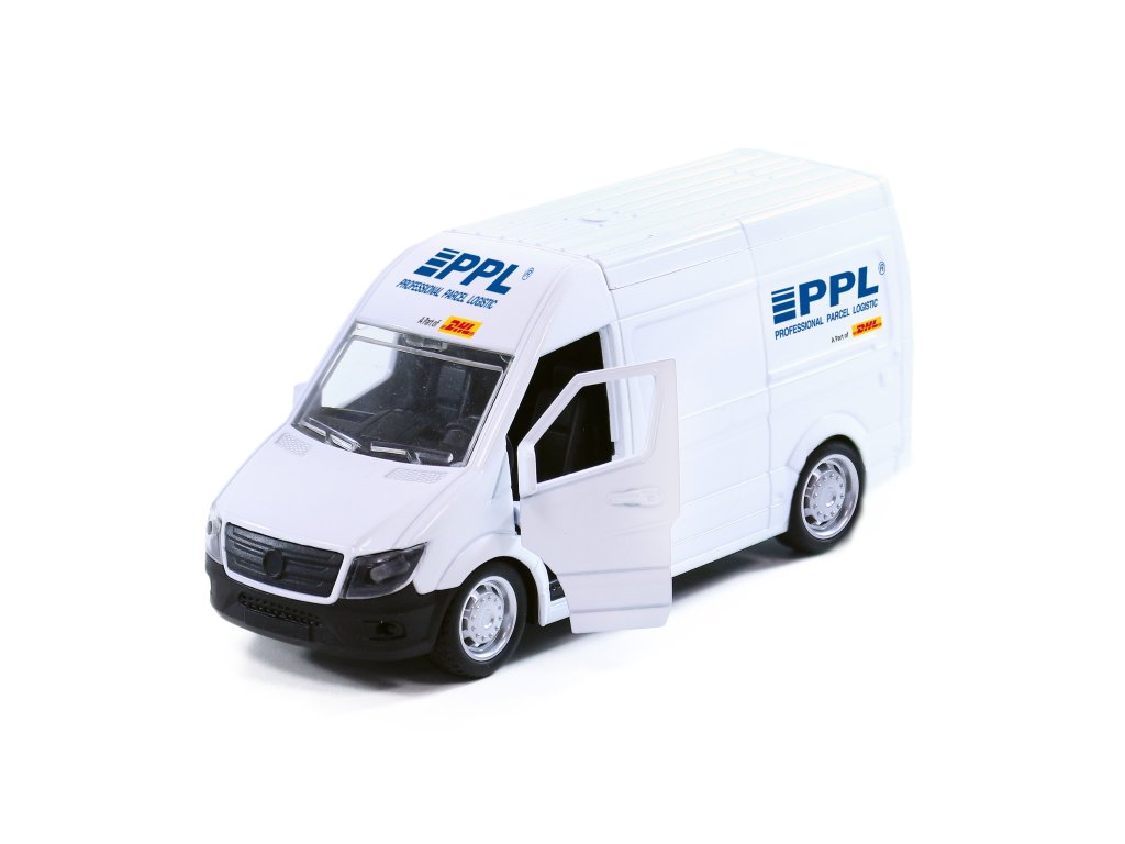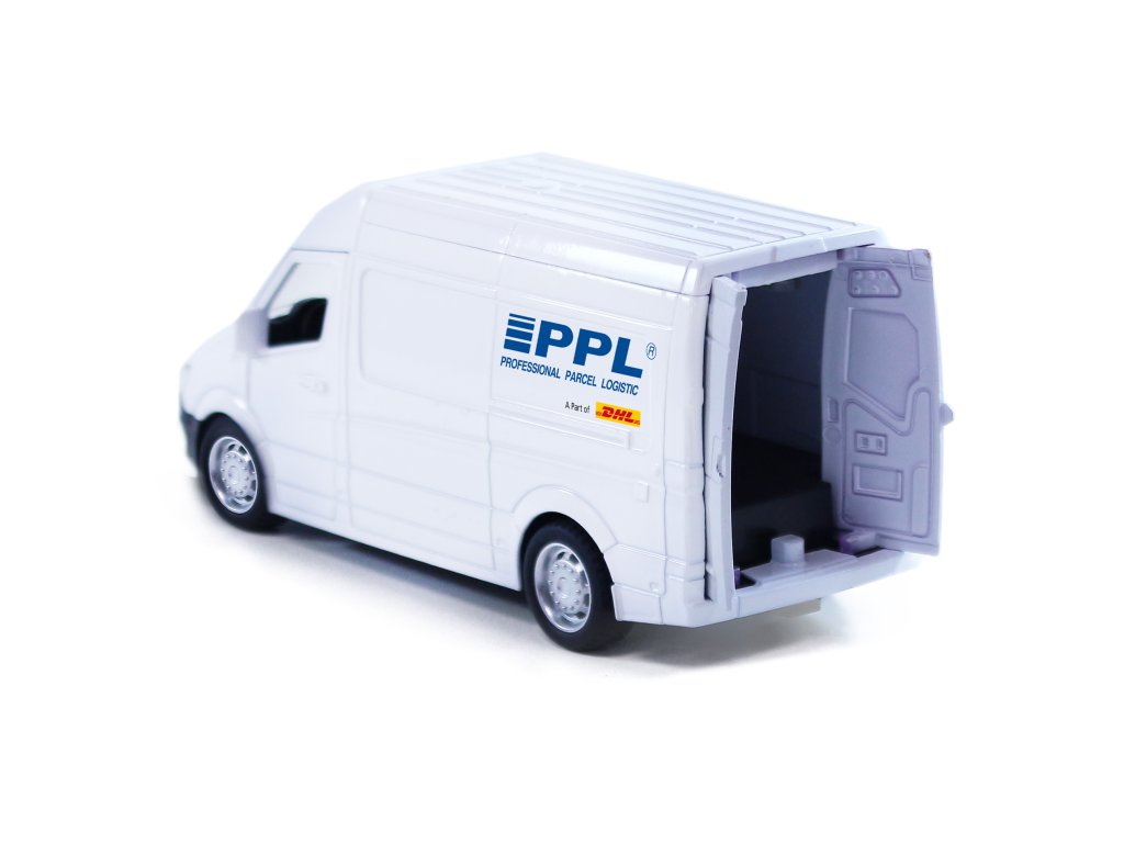Rozšiř si svůj vozový park a pořiď si tuhle originální kovovou dodávku s logem přepravní společnosti PPL. Auto má otevírací přední i zadní dveře. Jezdí na zpětný chod a jeho délka je 14,5 cm.