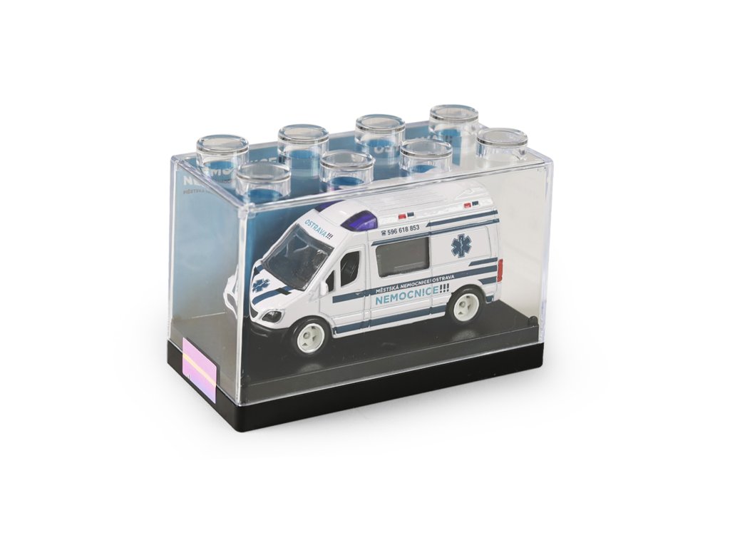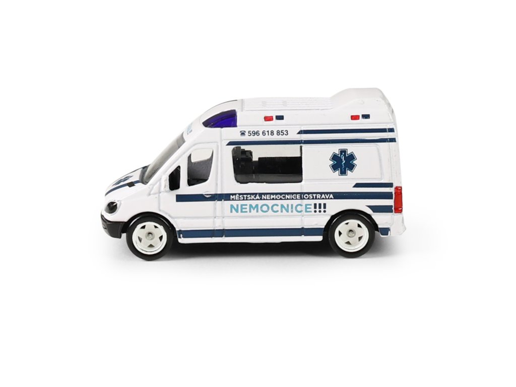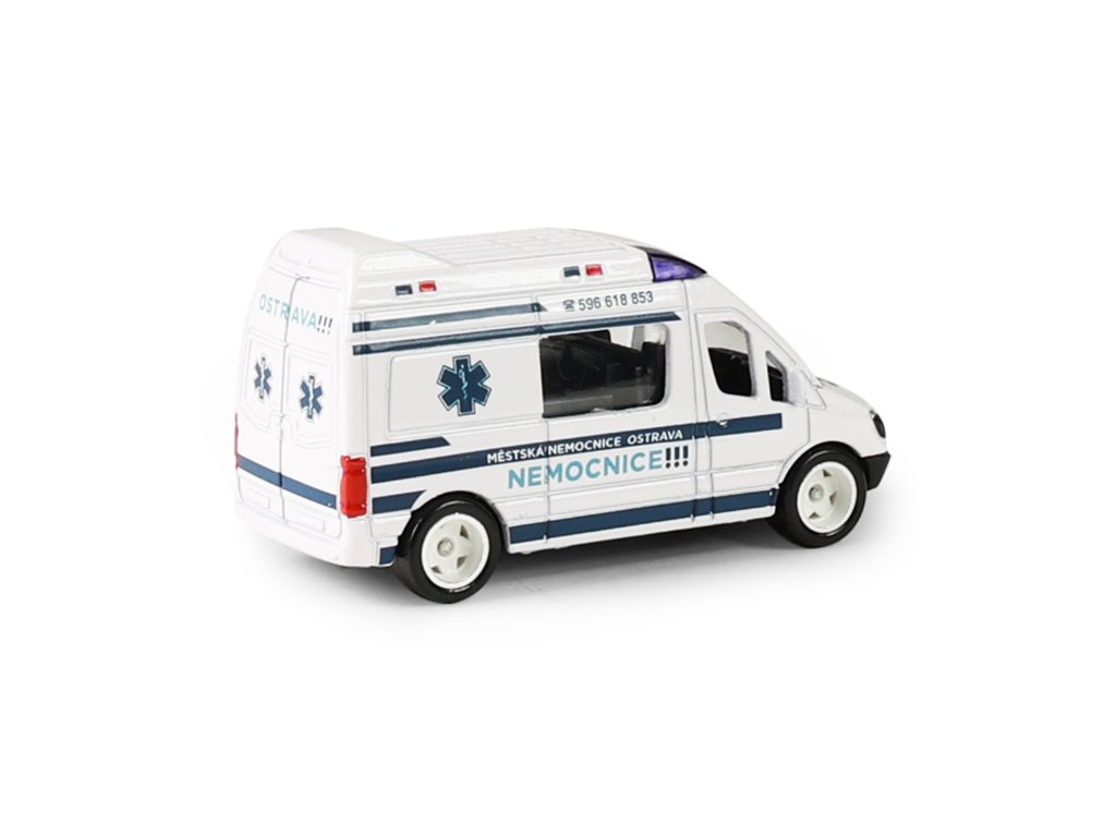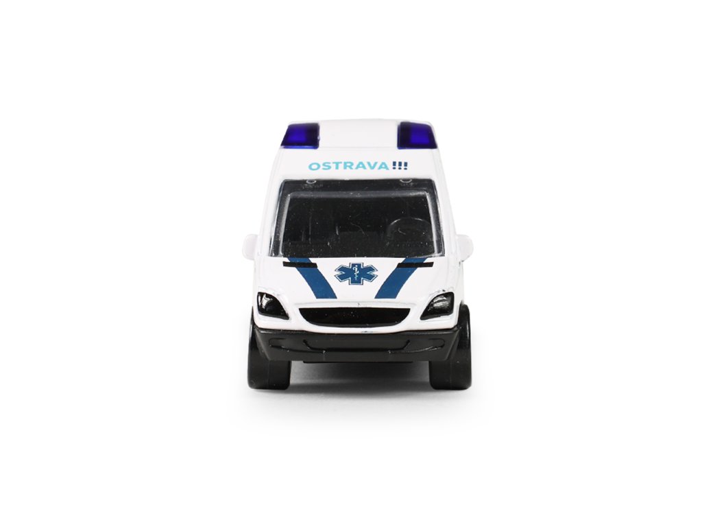 Model kovové sanitky s motivem Ostravy. Autíčko jezdí na volný chod a určitě potěší malé i velké sběratele. Díky délce 7 cm je ideální do dětských rukou i sbírky modelů. Skvělý doplněk pro hru na záchranáře!