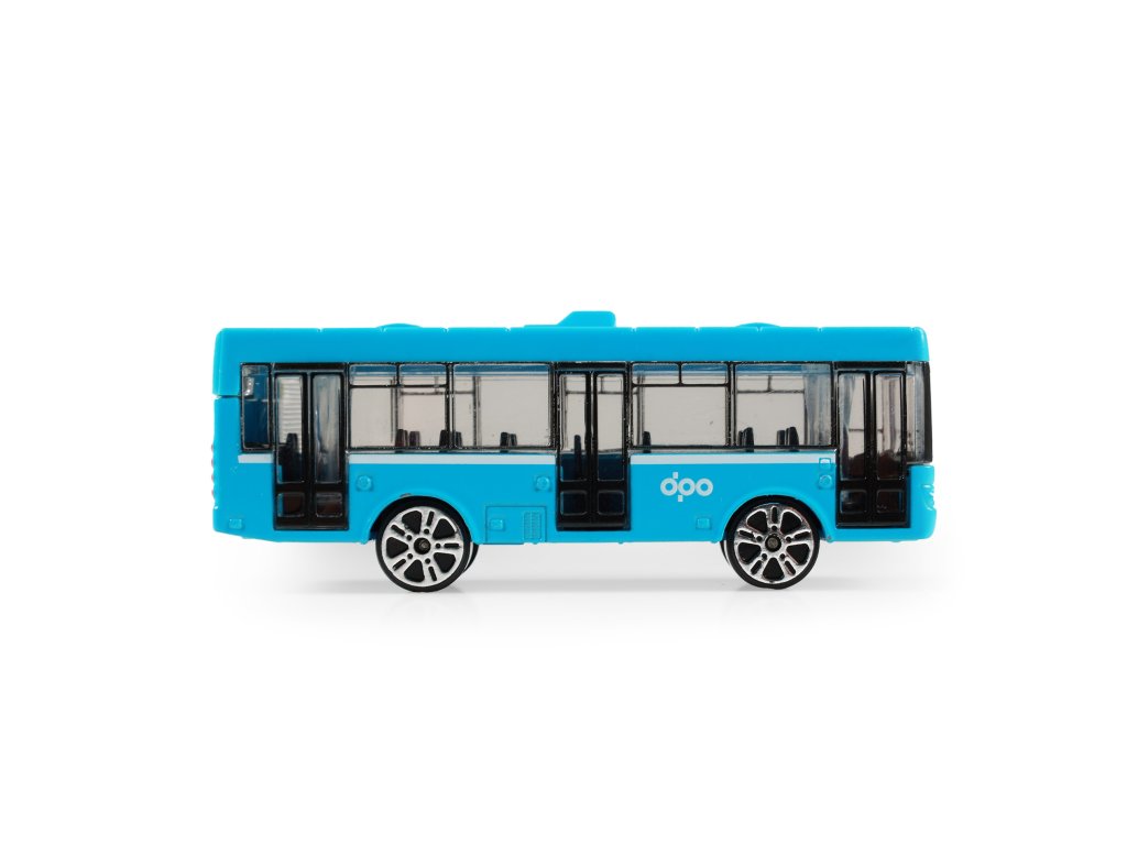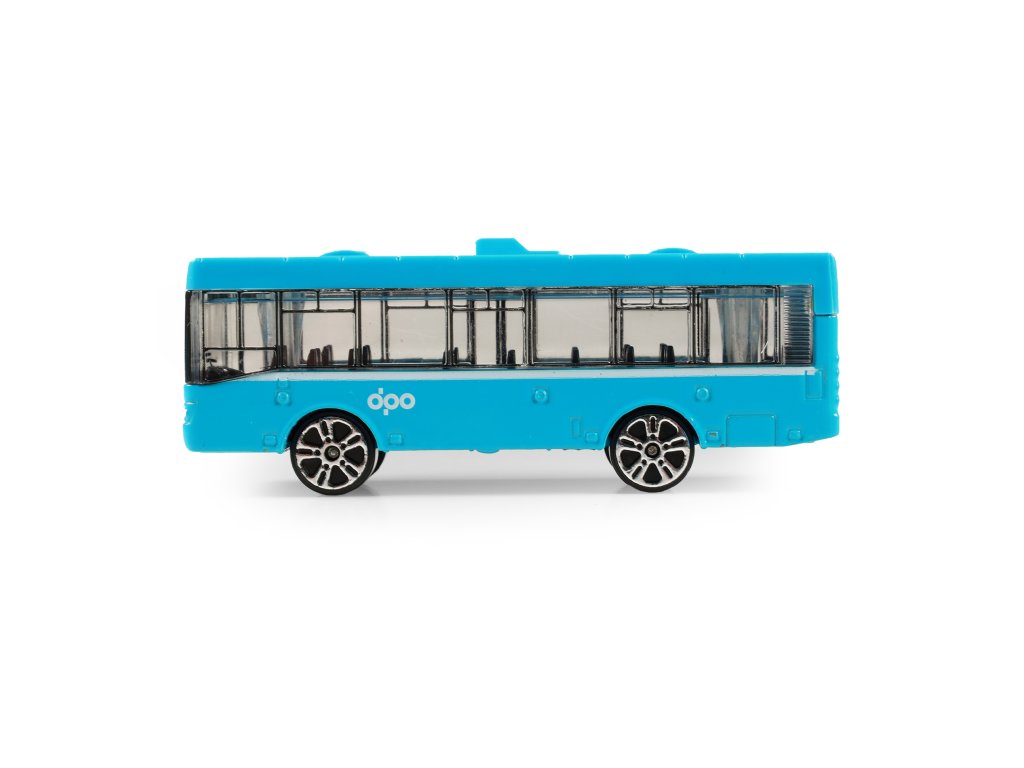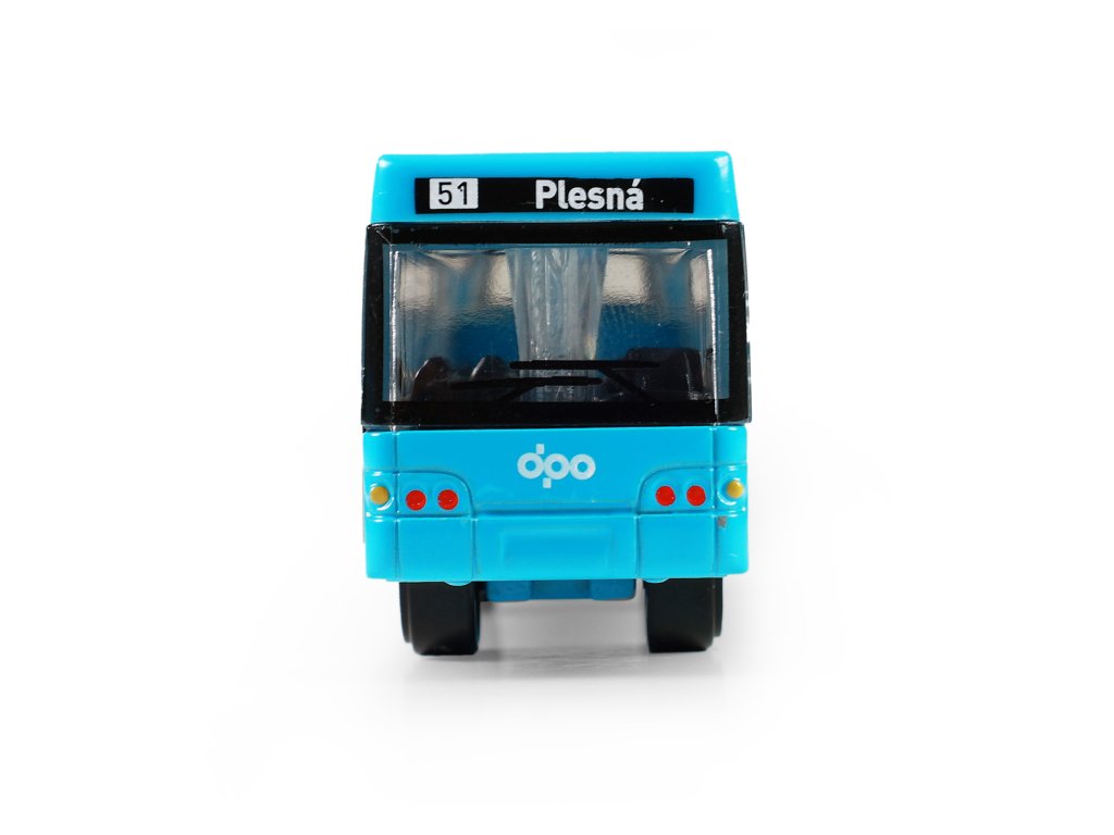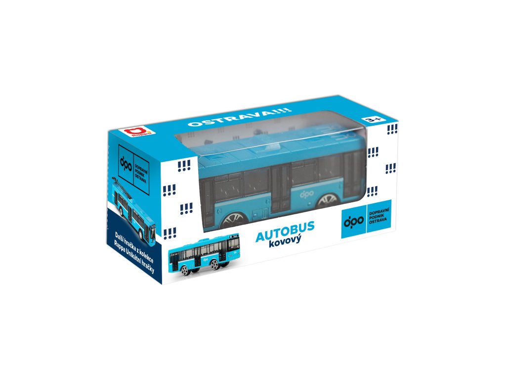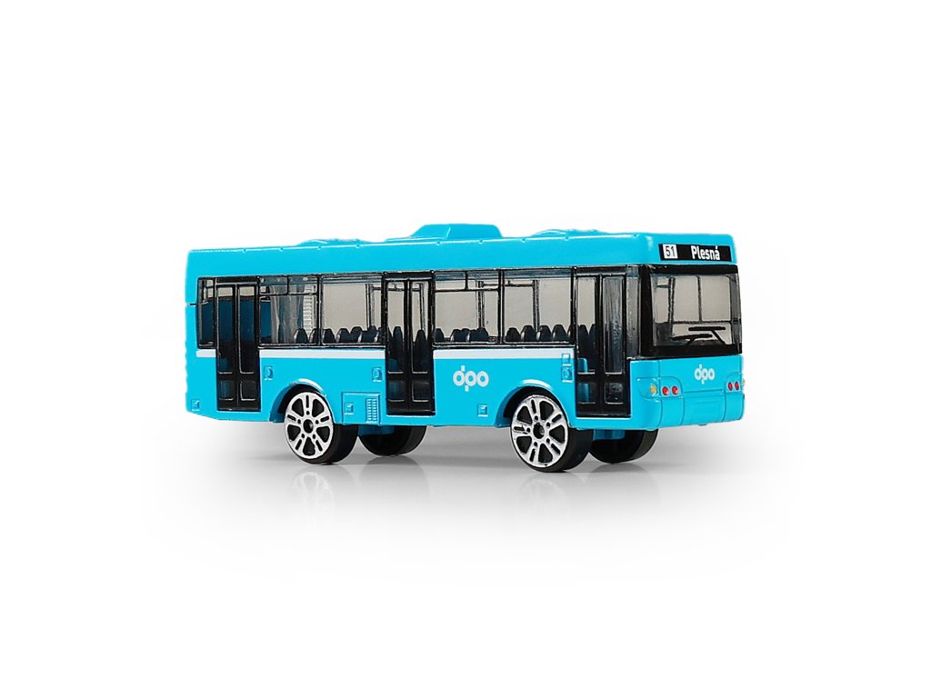 Kovový mini autobus v modrém provedení je unikátní hračkou, která nadchne všechny malé i velké fanoušky dopravních prostředků. Autobus je dlouhý cca 8,5 cm, jezdí na volný chod a je velmi podobný tomu, který jezdí ulicemi v Ostravě. Tato hračka byla vyrobena ve spolupráci s Dopravním podnikem města Ostravy a městem OSTRAVA!!!