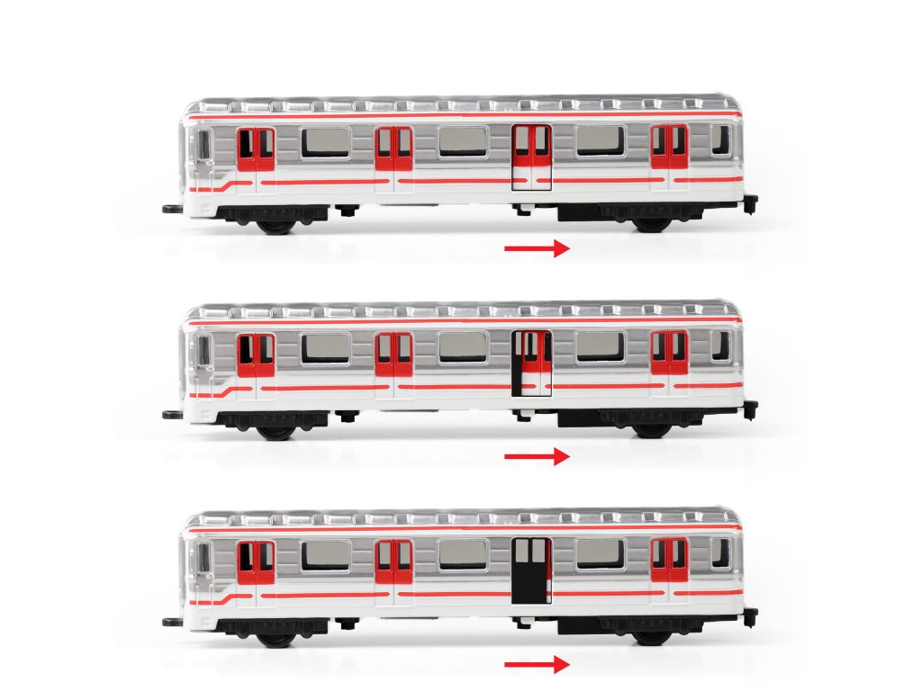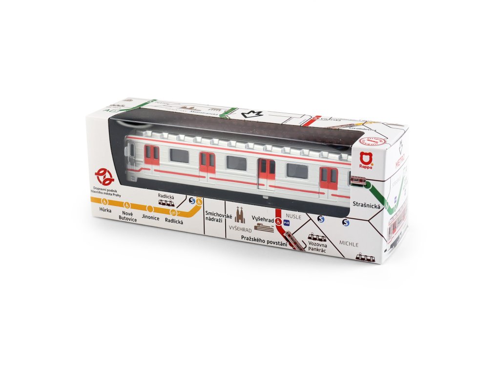Originální 16 cm dlouhý vagón vlaku metra z hlavního města Prahy, nesmí chybět v pokojíčku žádnému fandovi dopravních prostředků! Tento úžasný kovový model vlaku je ideální jako dárek nebo jako sběratelský kousek. Při koupi více kusů je lze jednoduše zapojit za sebou. Vláček jezdí na zpětný setrvačník. Rozchod kolejnice je cca 1,5 cm.