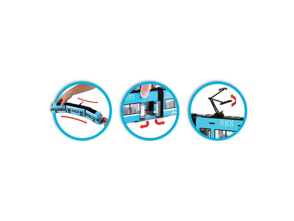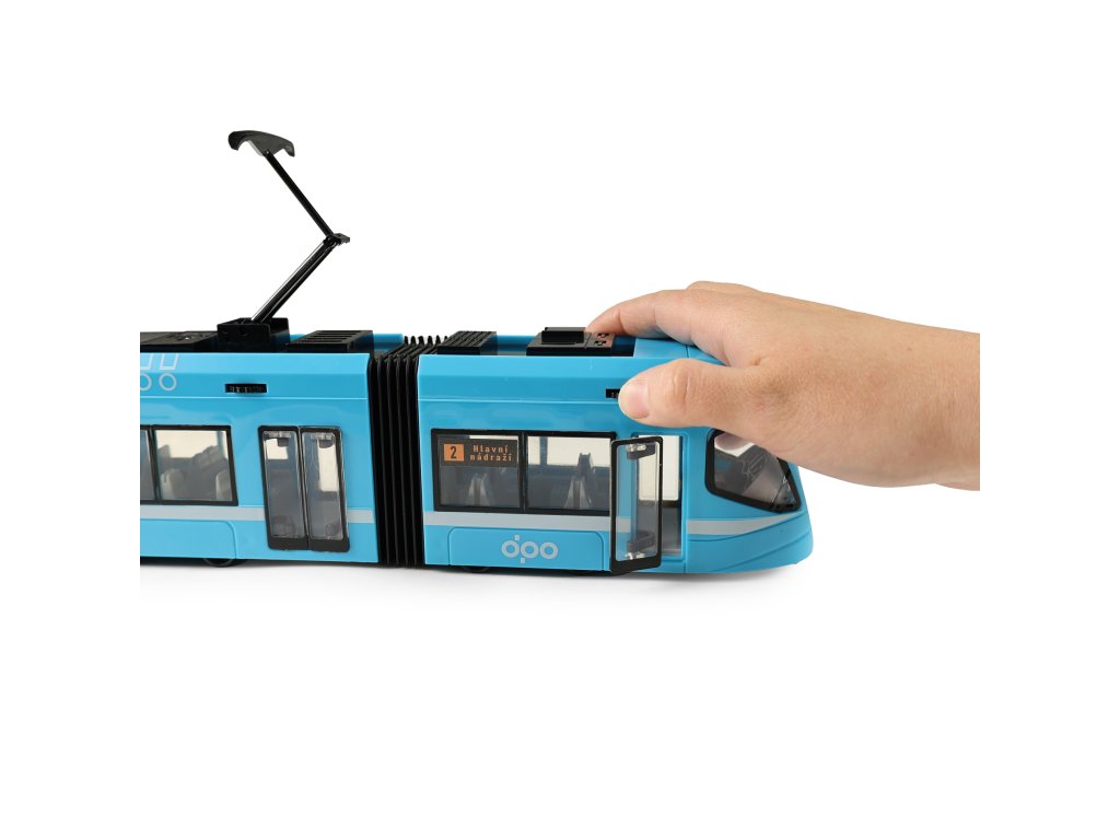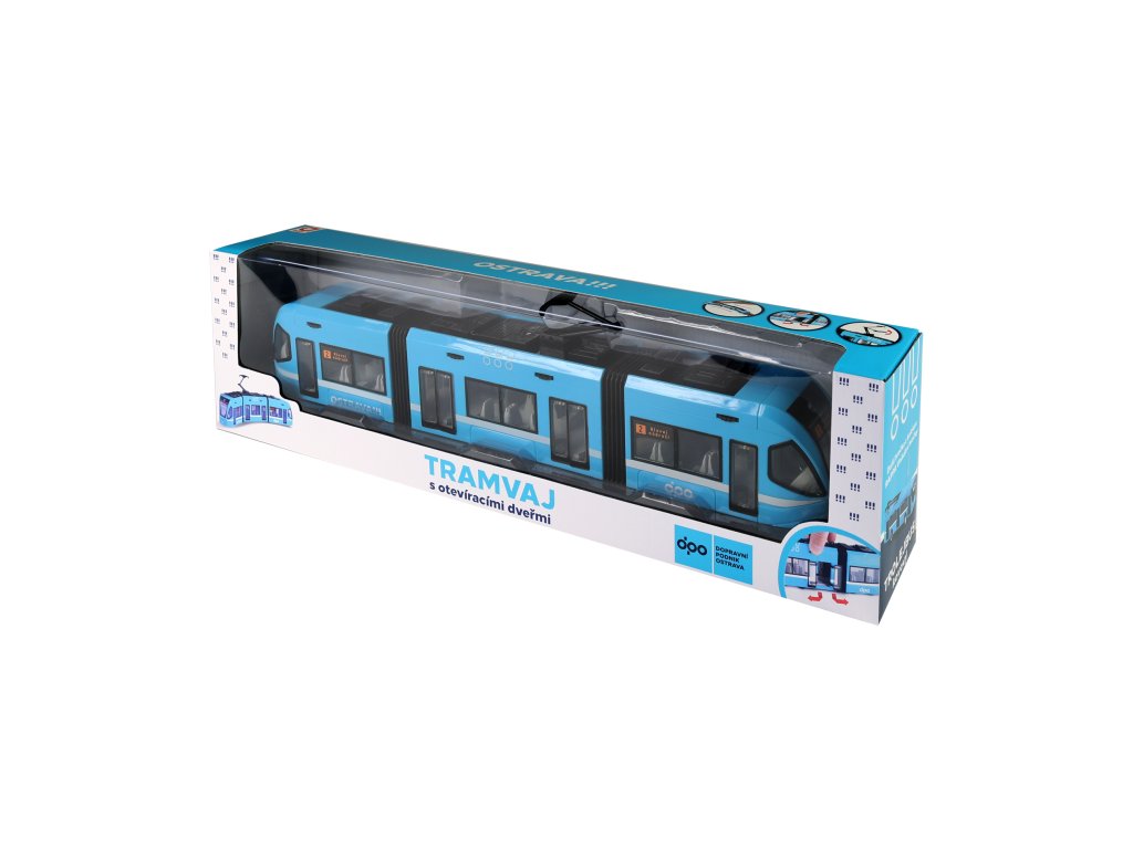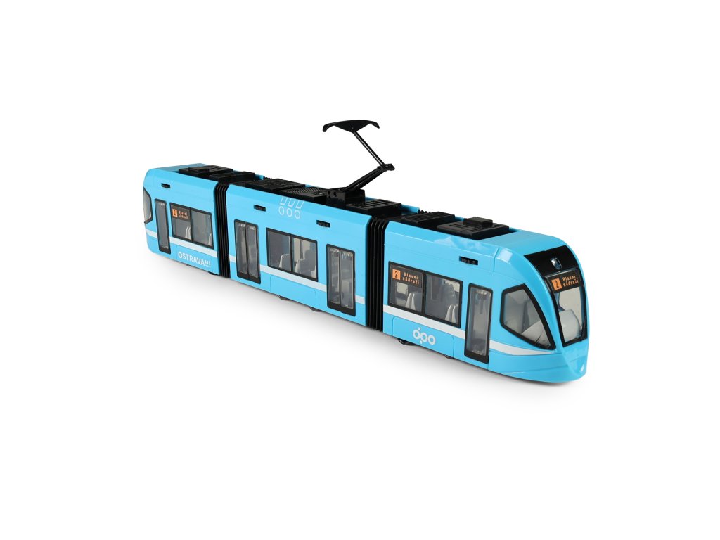 Moderní tramvaj v modré barvě, která jezdí na volný chod je perfektním dárkem pro všechny tramvajové nadšence. Dveře na jedné straně vozu lze manuálně otevřít. Tramvaj je vyrobená z plastu, je dlouhá 47cm a je velmi podobná tramvaji, která jezdí ulicemi v Ostravě. Tato hračka byla vyrobena ve spolupráci s Dopravním podnikem města Ostravy a městem OSTRAVA!!!