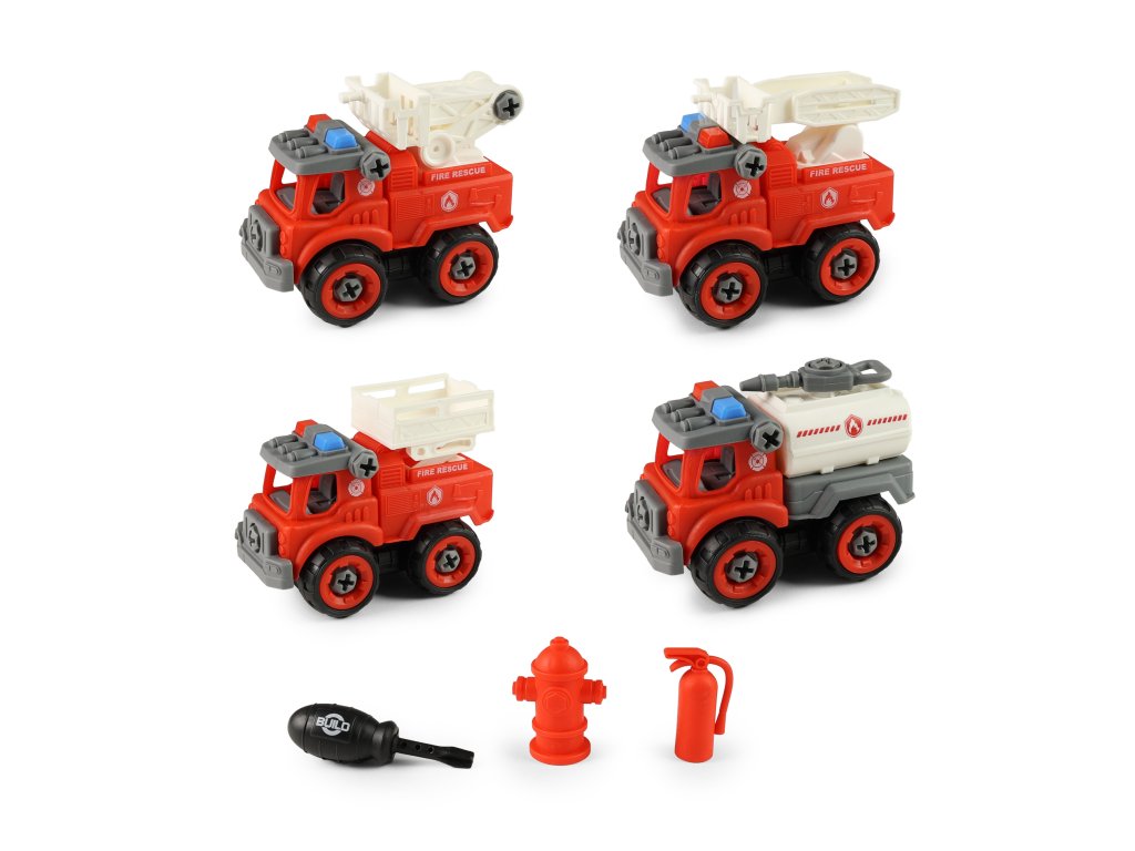 Malí hasiči a nadšení montéři si přijdou na své! Tato sada šroubovacích hasičských aut nabízí nejen spoustu zábavy, ale i možnost rozvíjet jemnou motoriku a technické dovednosti. Každé z autíček má délku přibližně 11 cm a je možné jej snadno rozebrat a znovu složit pomocí přiloženého šroubováku.