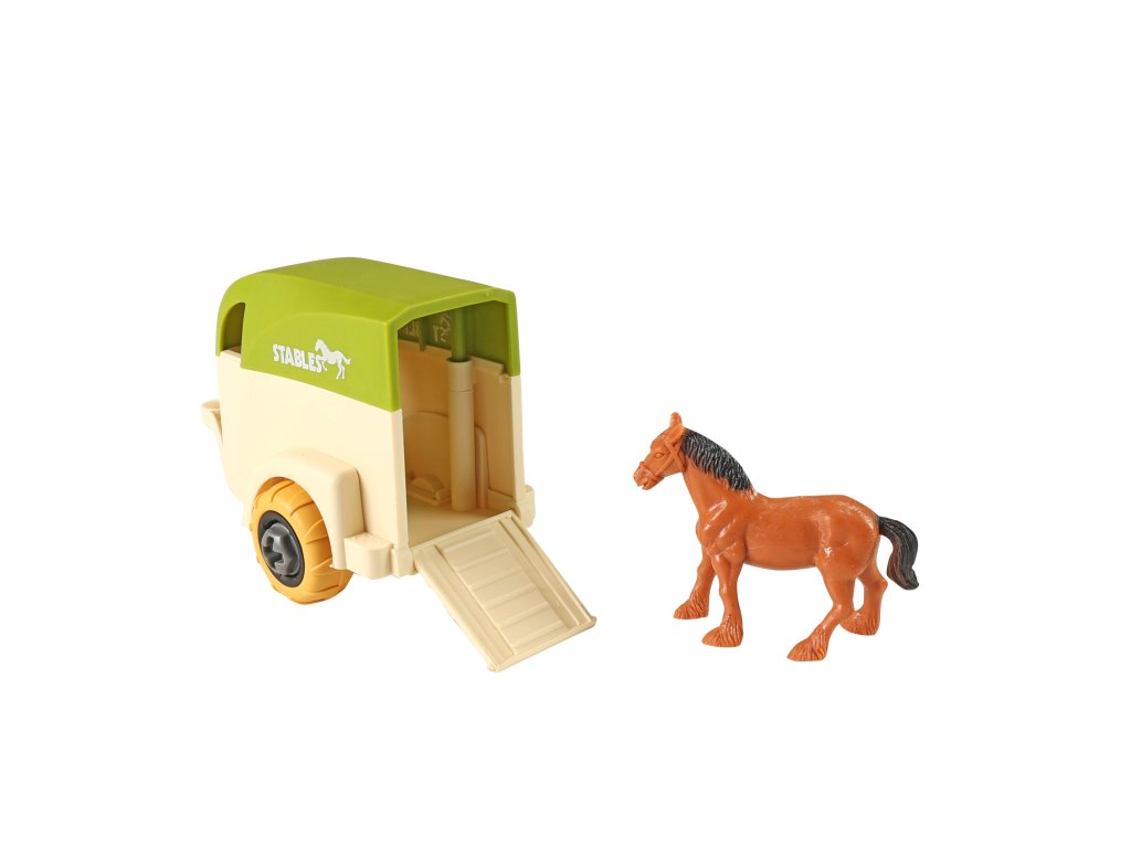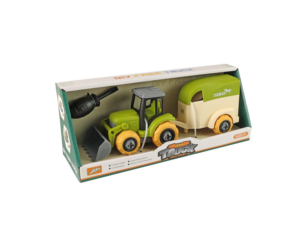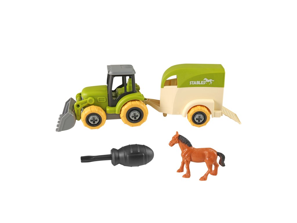 Šroubovací traktor s vlečkou, který se dá pomocí přiloženého dětského šroubováku snadno rozložit a zase složit. Rozvíjí technickou zručnost a kreativní myšlení. Traktor je vyroben z kvalitního plastu a jeho délka včetně přívěsu je cca 27 cm. Součástí je plastový koník ve velikosti 8 cm.