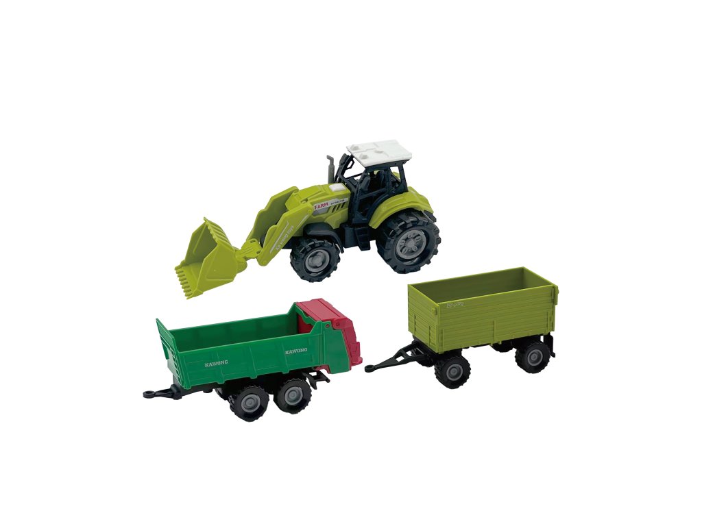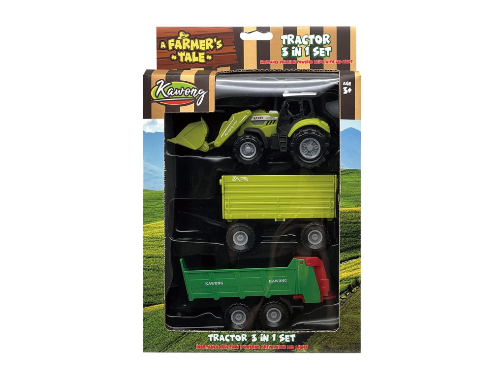 Připravte se na pořádnou jízdu na farmě! Tento parádní traktor se světelnými a zvukovými efekty potěší každého malého farmáře. Díky volnému chodu je snadno ovladatelný – stačí ho postrčit a vyrazí vpřed. Součástí balení jsou dvě odpojitelné vlečky, které lze zapojit za traktor a převážet vše, co je na statku potřeba. Pro světelný a zvukový efekt je potřeba 3 ks baterií typu AG13, které jsou uvnitř výrobku.