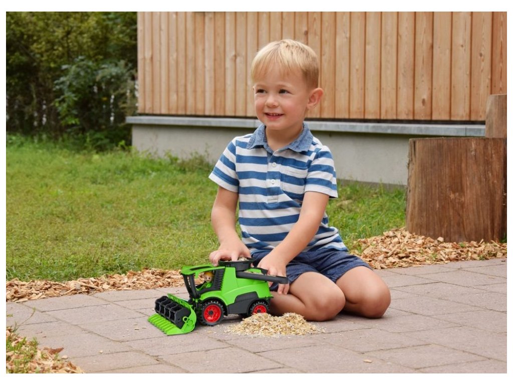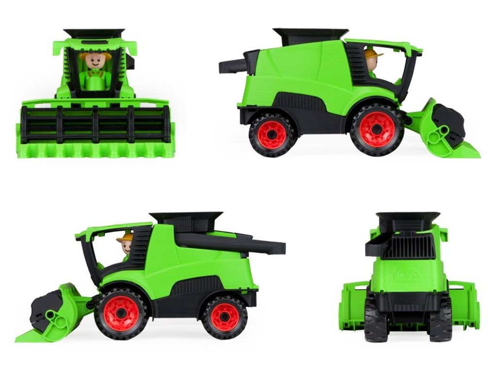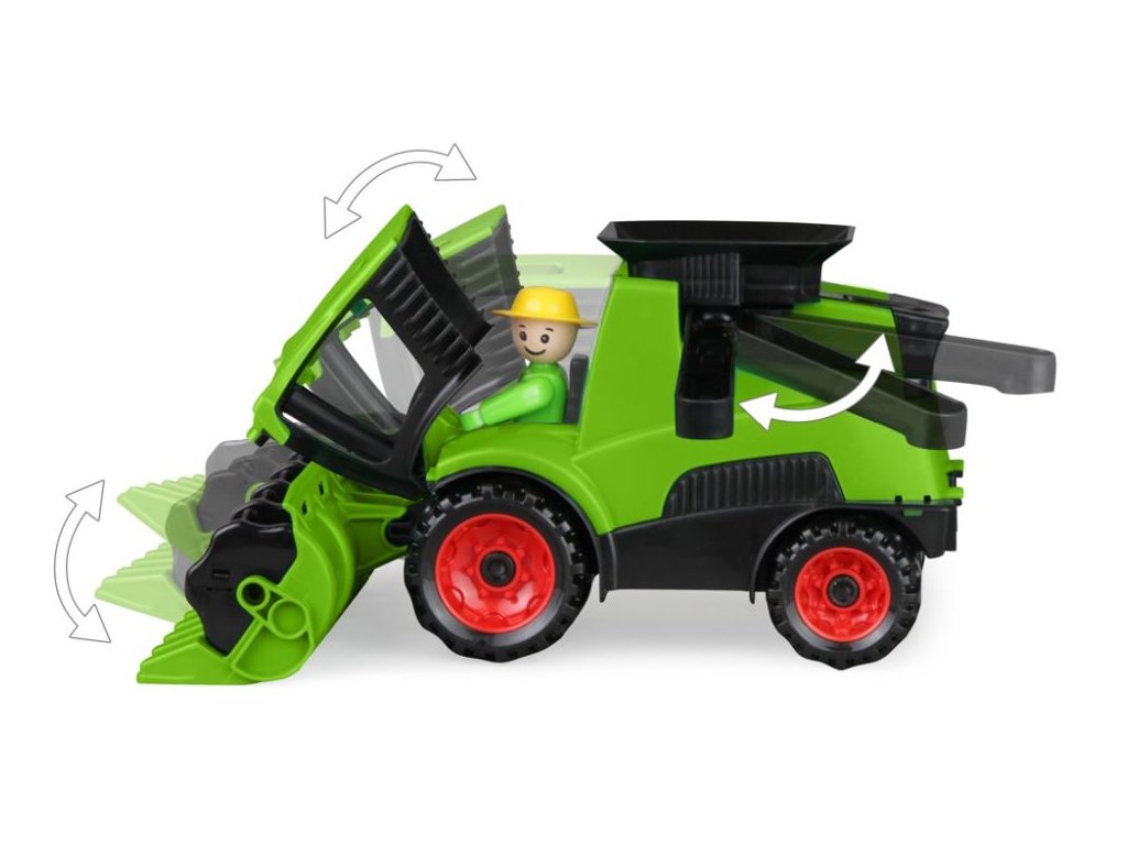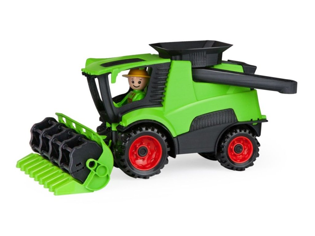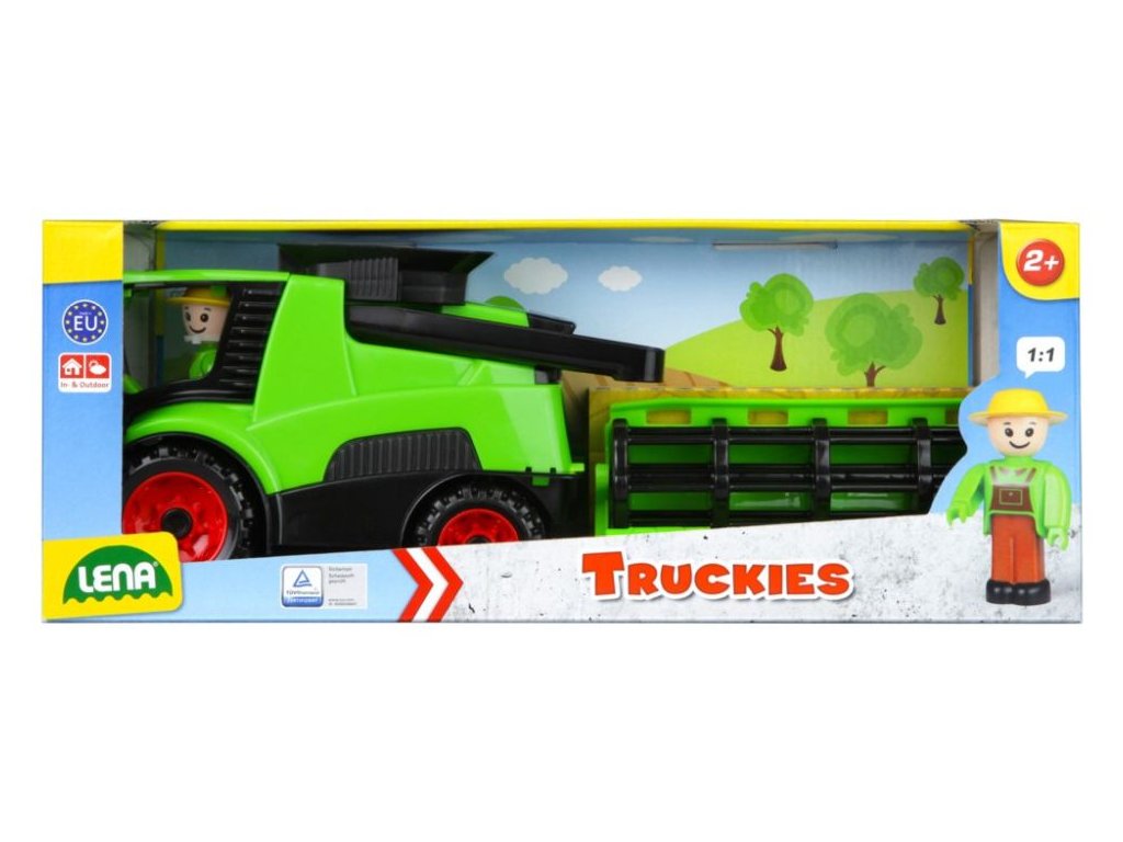 Truckies kombajn z kvalitního plastu a velmi pevnou stavbou. Plně mechanicky funkční. Obsahuje odklopitelnou kabinu s aktivním panáčkem. Vhodné od 2 let.