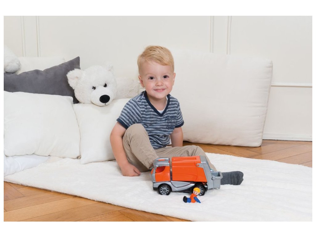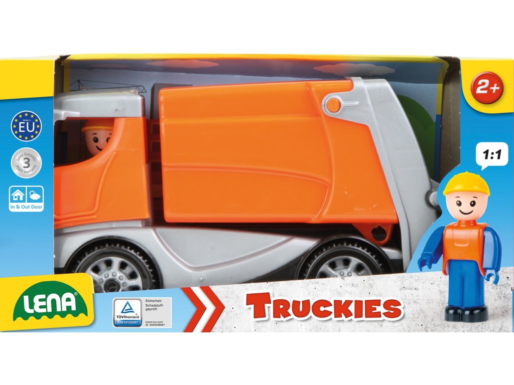 Truckies popelář z kvalitního plastu a velmi pevnou stavbou. Plně mechanicky funkční. Obsahuje odklopitelnou kabinu s aktivním panáčkem a zadní kontejnér.