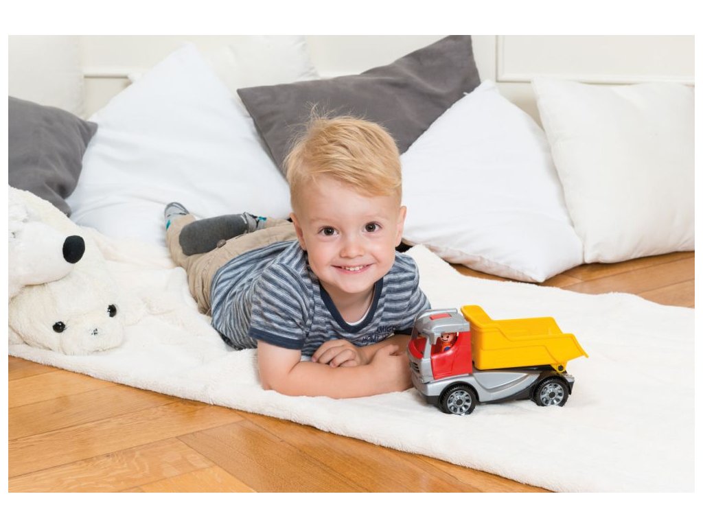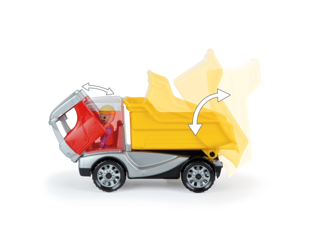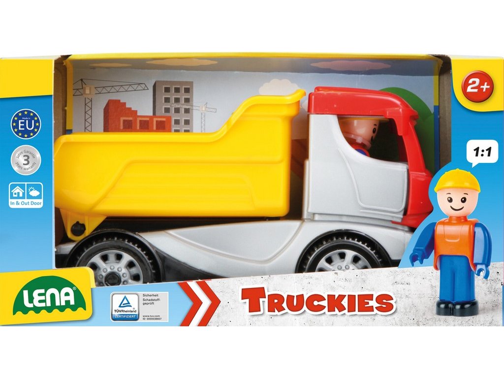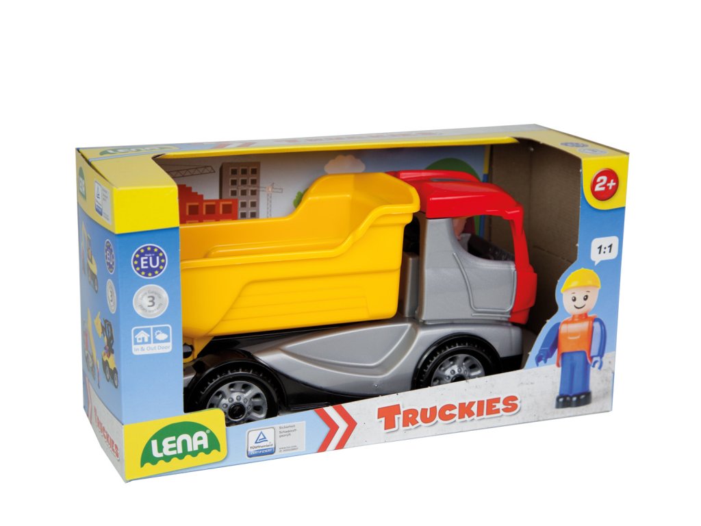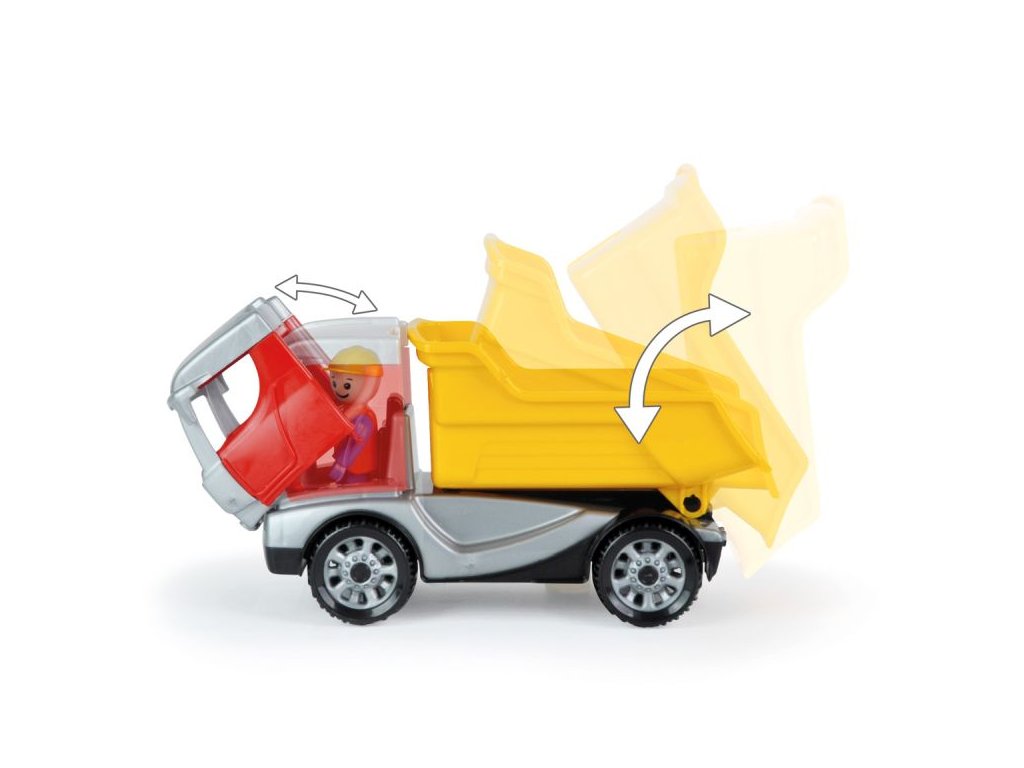 Truckies sklápěč z kvalitního plastu a velmi pevnou stavbou. Plně mechanicky funkční. Obsahuje odklopitelnou kabinu s aktivním panáčkem.