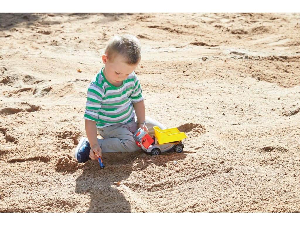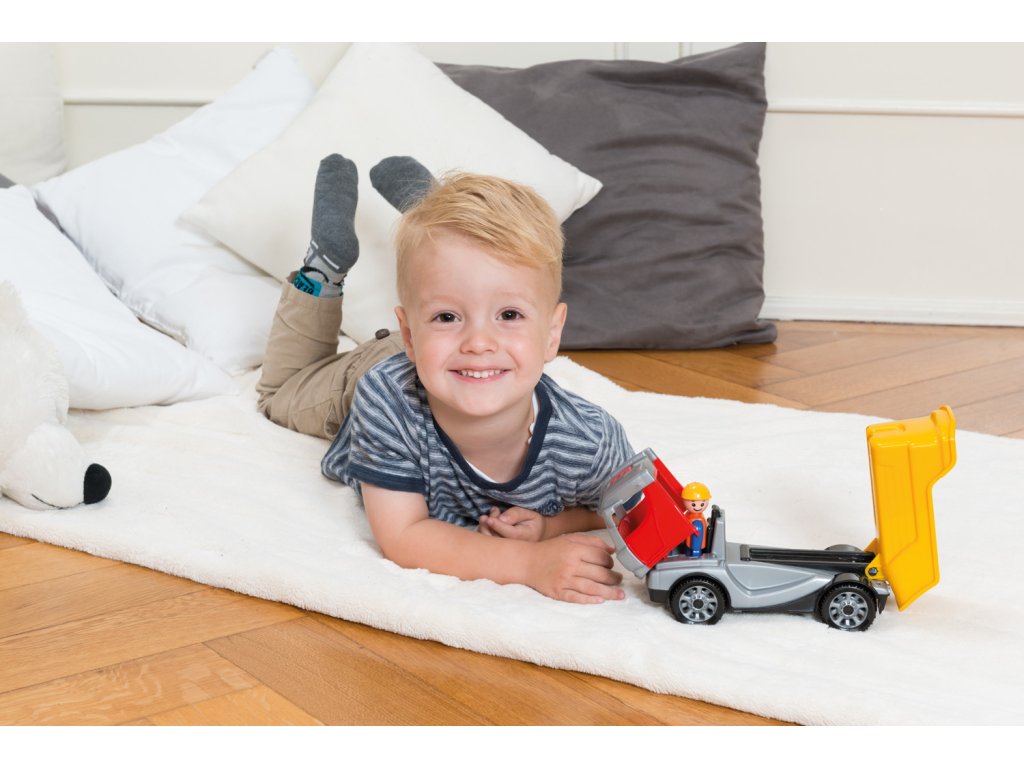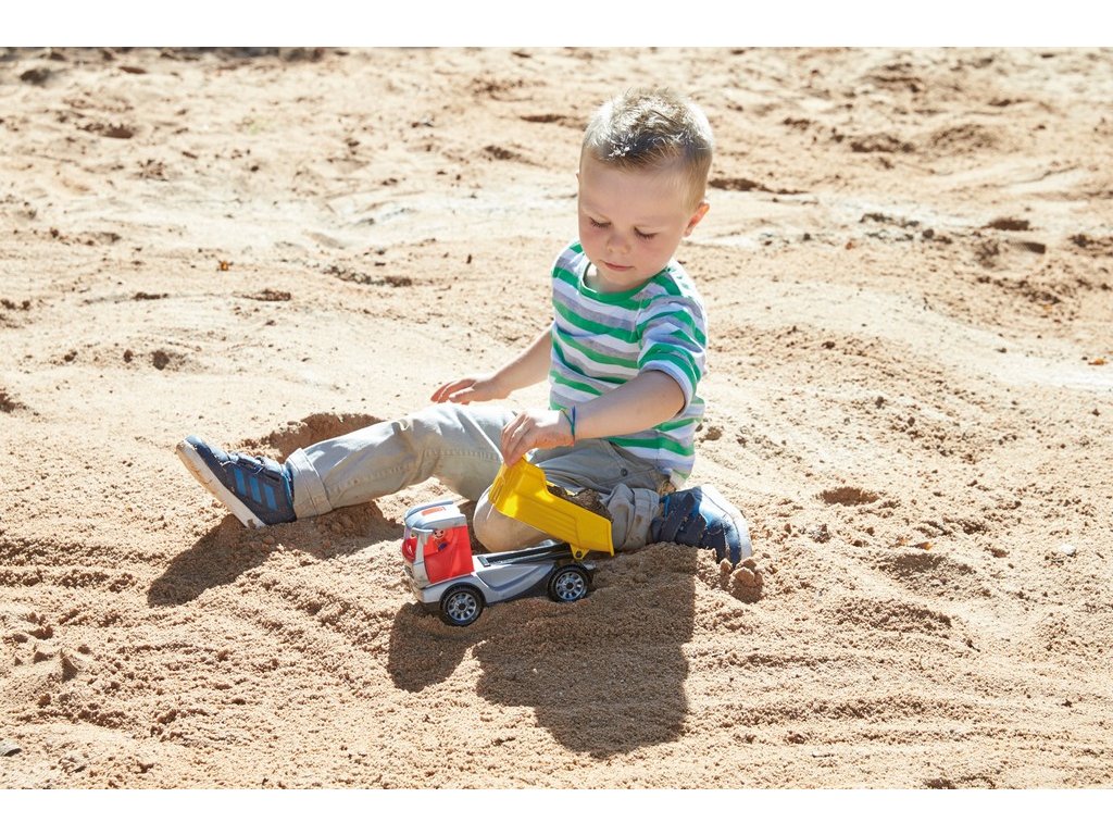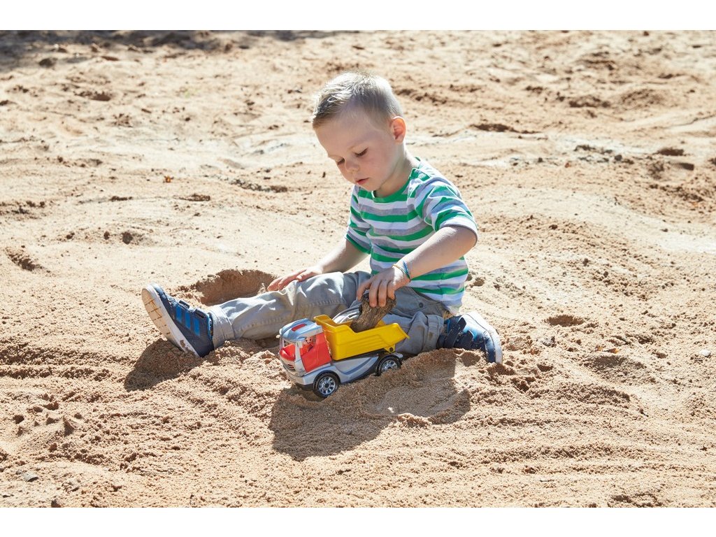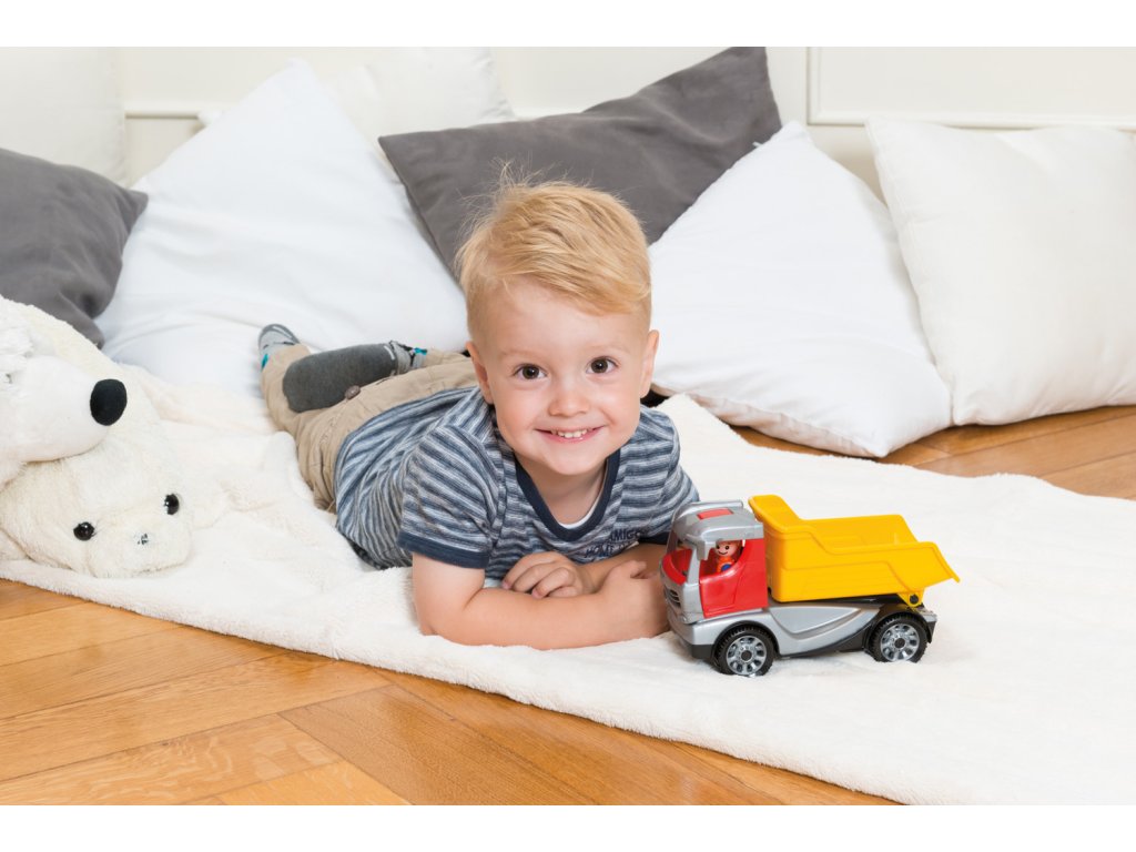 Truckies sklápěč z kvalitního plastu a velmi pevnou stavbou. Plně mechanicky funkční. Obsahuje odklopitelnou kabinu s aktivním panáčkem.