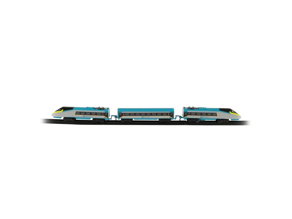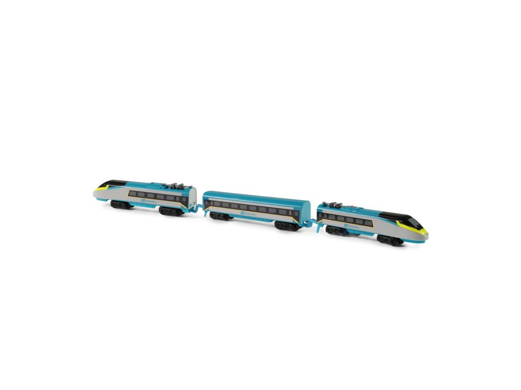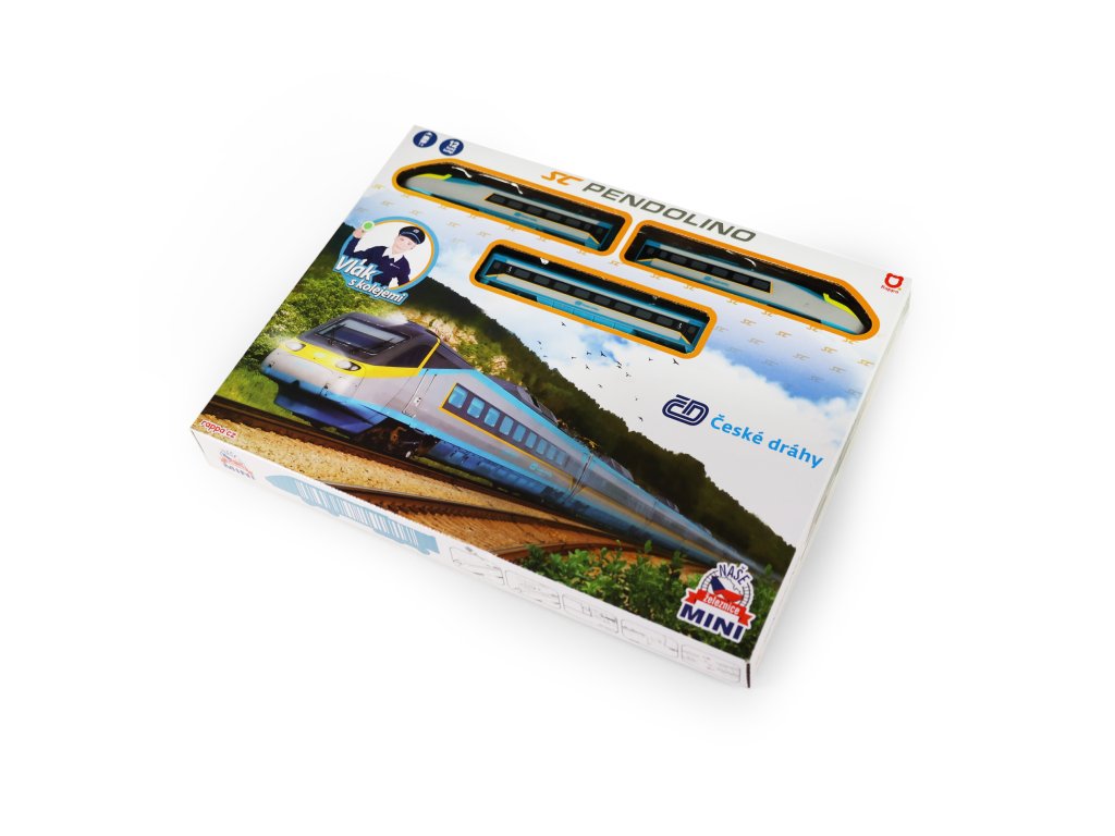 Milujete cestování vlakem? Tak sestavte koleje, postavte na ně lokomotivu, připojte vagóny a vzhůru za dobrodružstvím! Originální vlak Pendolino obsahuje přední a zadní lokomotivu a 1 vagón, 8 zahnutých a 4 rovné koleje. Lze vytvořit kolejiště až do velikosti 96 x 58 cm. Rozteč kolejí je 1,4 cm. Lokomotiva měří na délku 14 cm a vagón 13,5 cm. Lokomotiva jezdí na 1 ks AA baterie (není součástí), na střeše lokomotivy vypínačem ON/OFF (zapnuto/vypnuto) uvedete vlak do chodu. Vlak Pendolino MINI lze kombinovat s vlakem RegioJet MINI a Slovenské dráhy MINI.