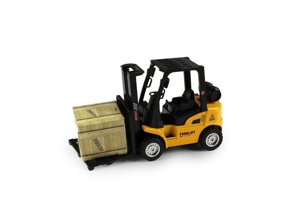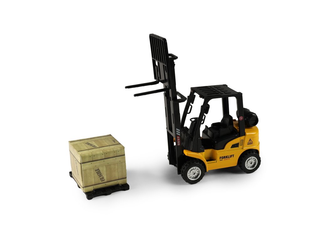 Vysokozdvižný vozík je skvělým doplňkem každé dětské sbírky stavebních nebo pracovních strojů. Díky zpětnému chodu se vozík po natažení dozadu sám rozjede vpřed, což zajišťuje zábavnou a dynamickou hru. Jeho délka je cca 13 cm a má pohyblivou vidlici. Vozík je ideální pro děti, které milují techniku, staveniště nebo hru na profese.