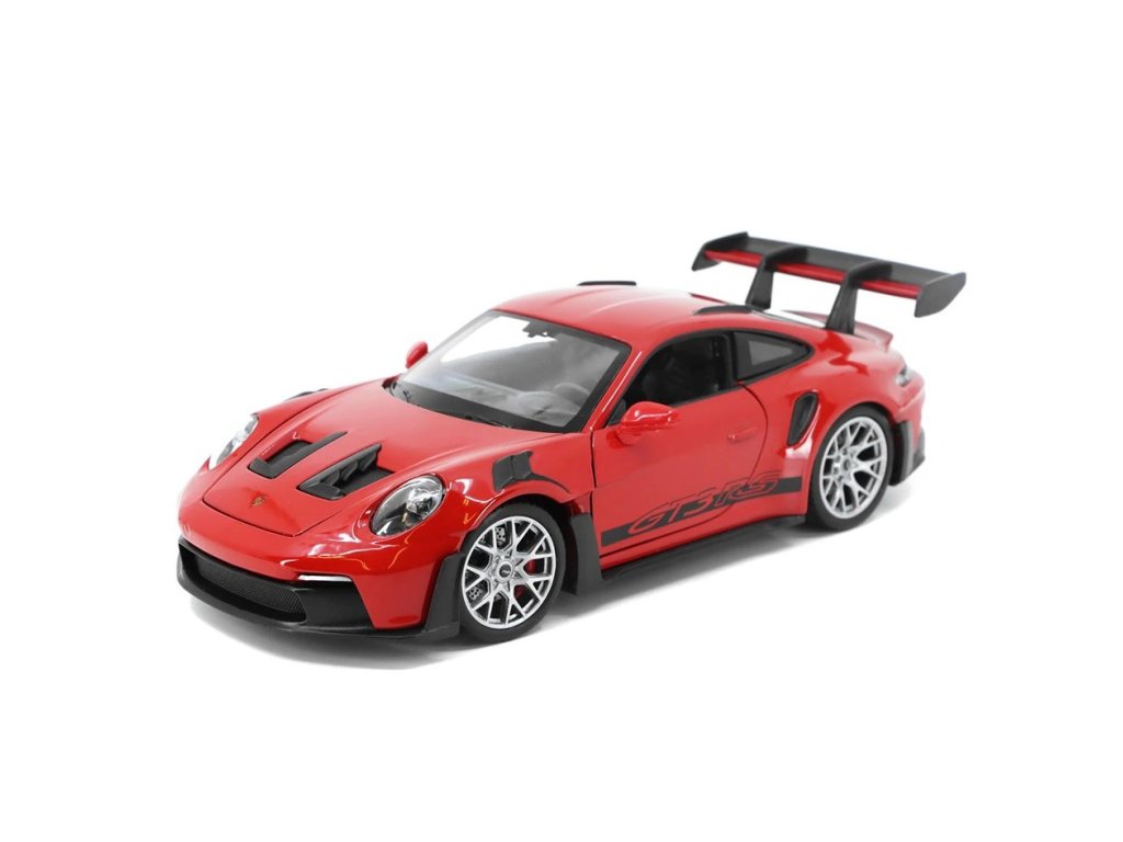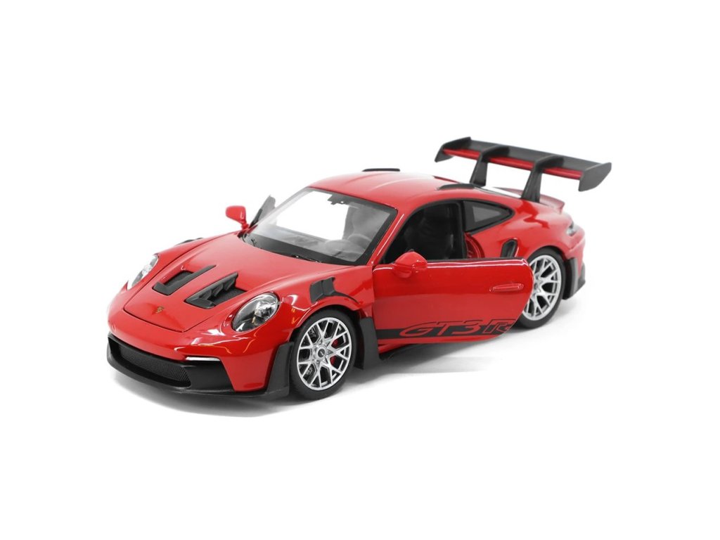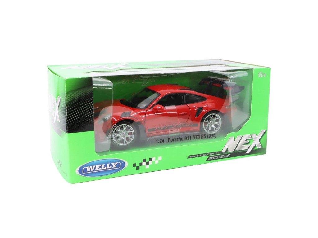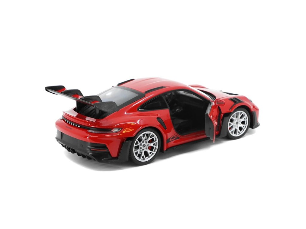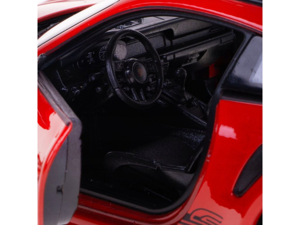 Model auta Porsche 911 GT3 RS v krabičce, kovová karoserie, pohon na volnoběh. Velikost auta přibližně 22 cm dle modelu. Autům se dají otrevírat přední dveře. Pěkné provedení, vhodné jako sběratelský kousek nebo na hraní pro Vaše děti. Doporučeno od 3 let.