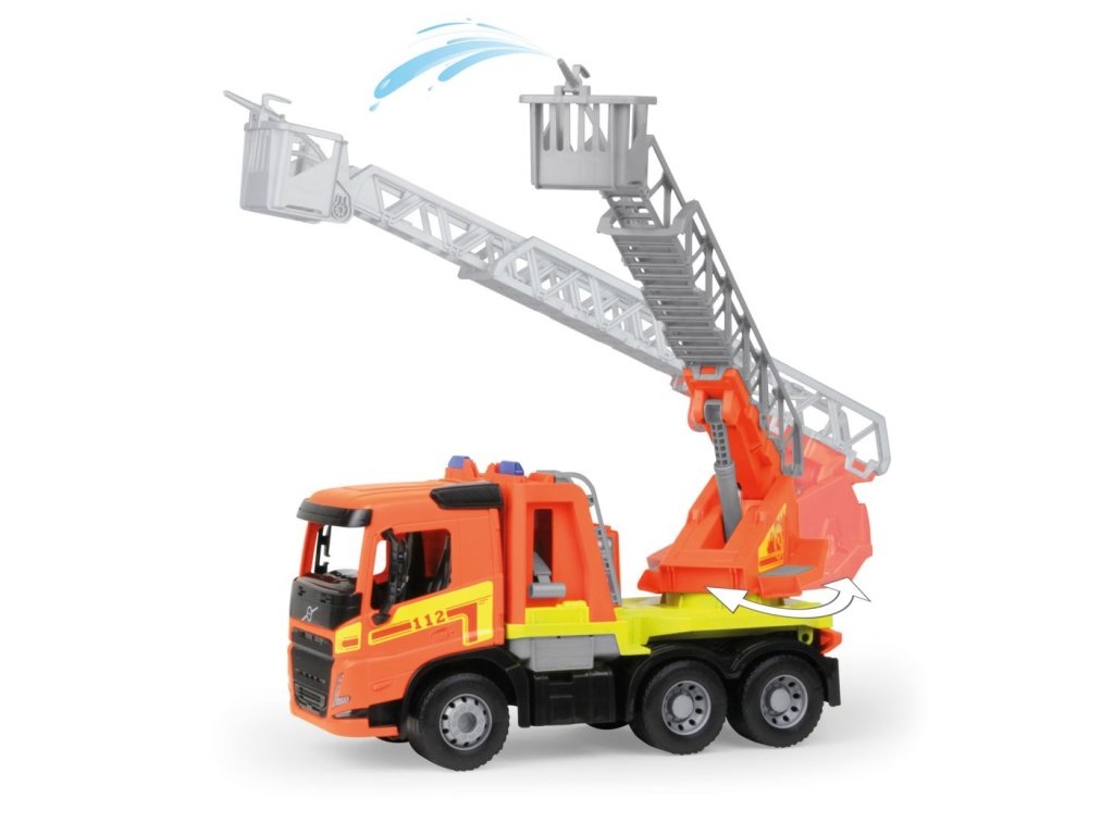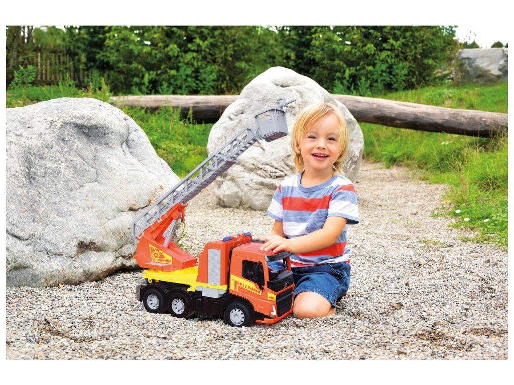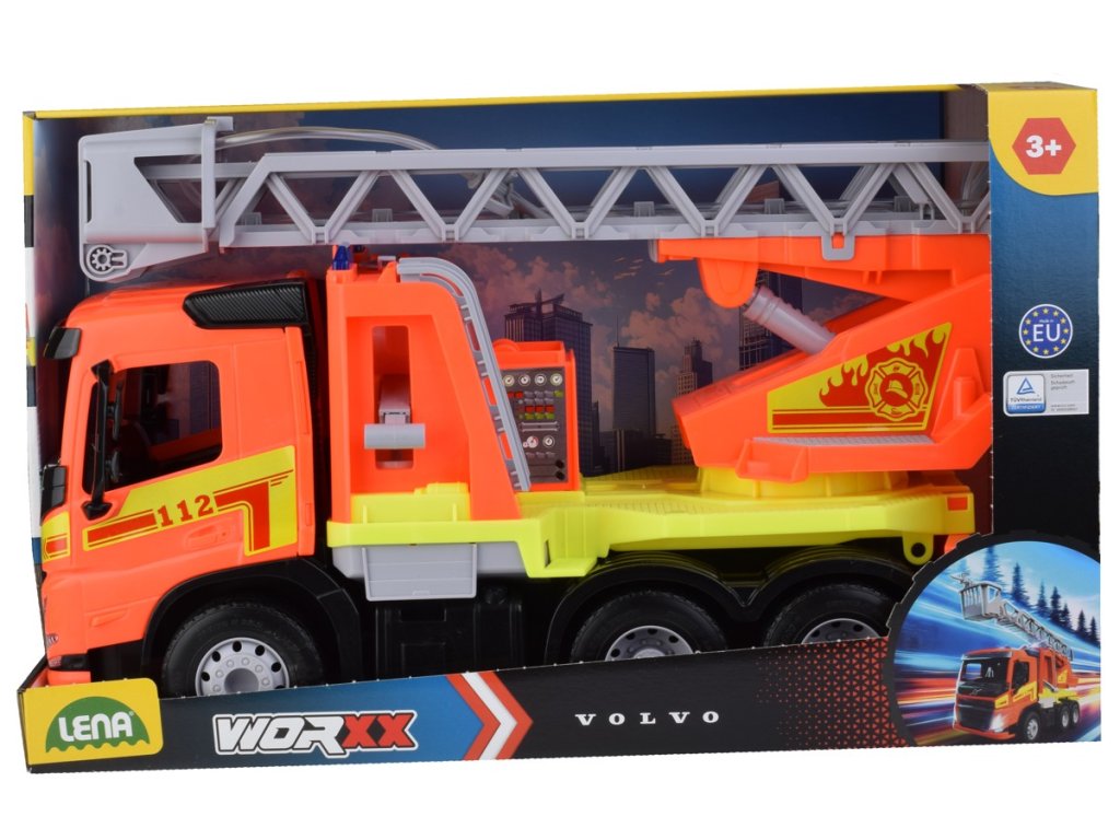 Auto hasič s žebříkem WORXX Volvo má 6mm tlusté kovové osky u kol. Funkční požární stříkačka s dostřikem až 3m. 250ml integrovaná nádobka na zásobu vody. Možnost otáčení s žebříkem v 270stupňů. Výsuv žebříku 60cm.