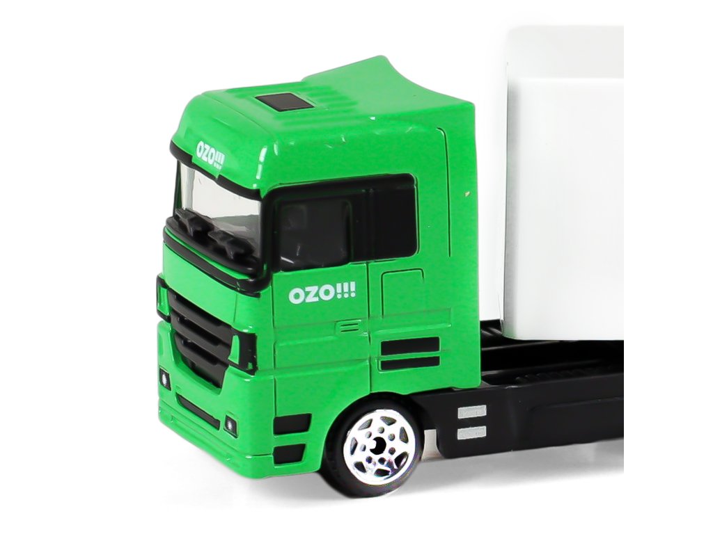 Tenhle senzační kamion s logem OZO !!! nesmí chybět ve tvé sbírce klasických autíček! Model kamionu 1:87 je vyroben z kovu, přívěs je vyroben z PVC. Model je dlouhý cca 20 cm a jezdí na volný chod. Tahle unikátní hračka nadchne všechny kluky, tak obohať svou sbírku o tento parádní kousek!