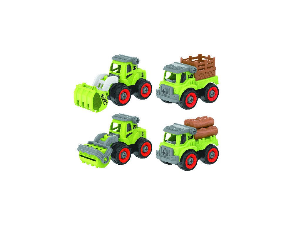 Auto šroubovací zemědělské 4 ks. Velikost 13 cm. Volná kola. V balení - 4 auta, náklad, šroubovák.