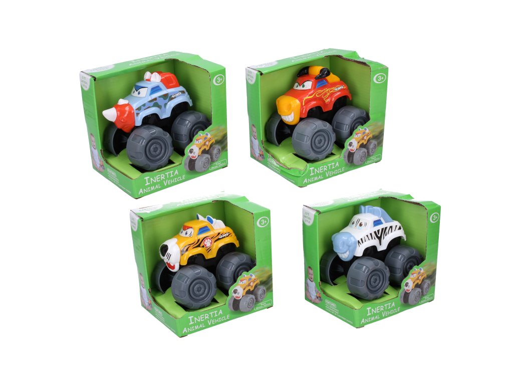 Auto zvíře. Velikost 12 cm. Na setrvačník. 4 varianty - nosorožec, býk, lev, zebra.