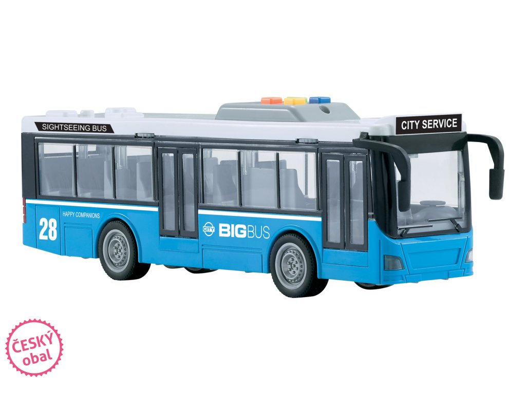 Autobus v měřítku 1:16 potěší každého malého milovníka MHD. Je vybaven světelnými a zvukovými efekty, které se aktivují čtyřmi tlačítky na střeše. Autobus jezdí na setrvačník. Baterie: 3 x AG13, jsou součástí balení. Rozměry autobusu: 9 x 29 x 5,8 cm. Rozměry balení: 16,5 x 32 x 11 cm. Věk: 3+