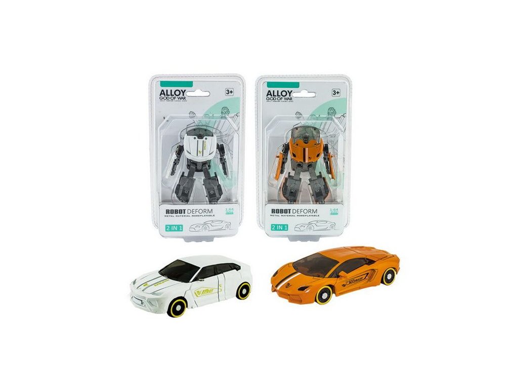 Autorobot kovový. Velikost 11 cm. Volná kola. 2 varianty - bílý, oranžový.