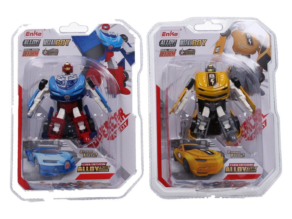 Autorobot kovový. Rozměry 9x8,5x2 cm. Volná kola. Display box 12 ks. Více variant.